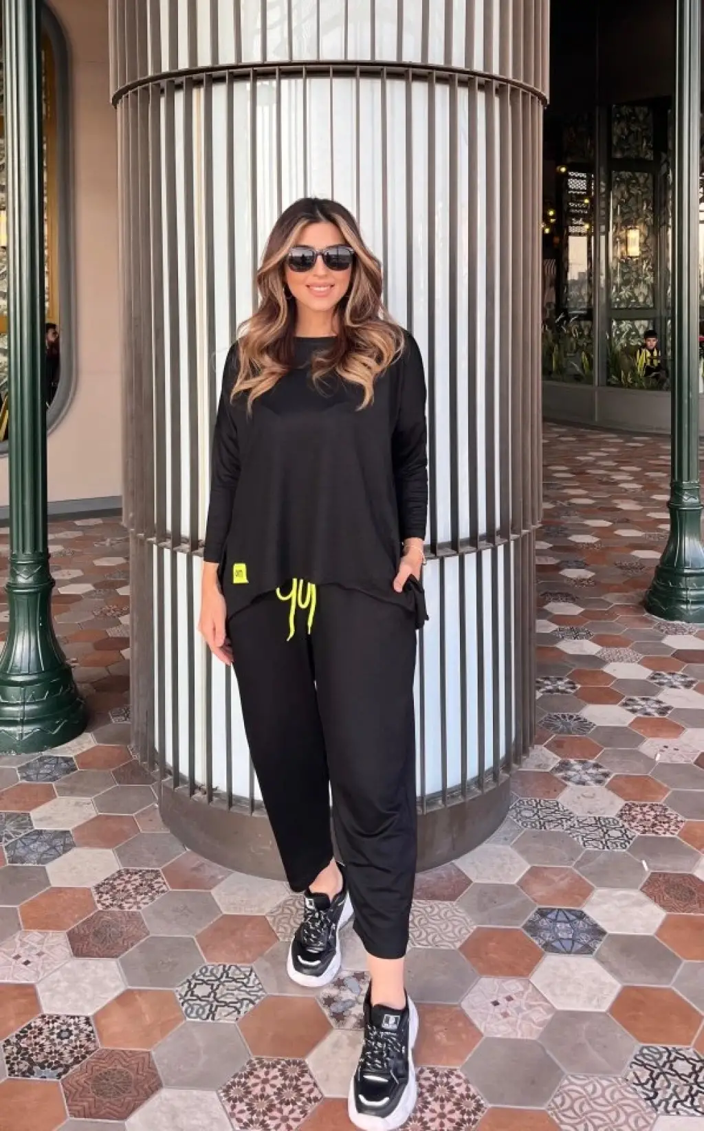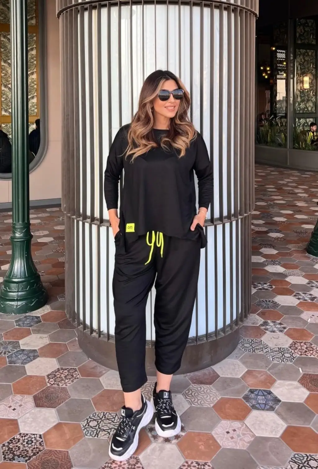 Kadın Uzun Kollu Nope Baskılı Beli Ribanalı Ikili Takım