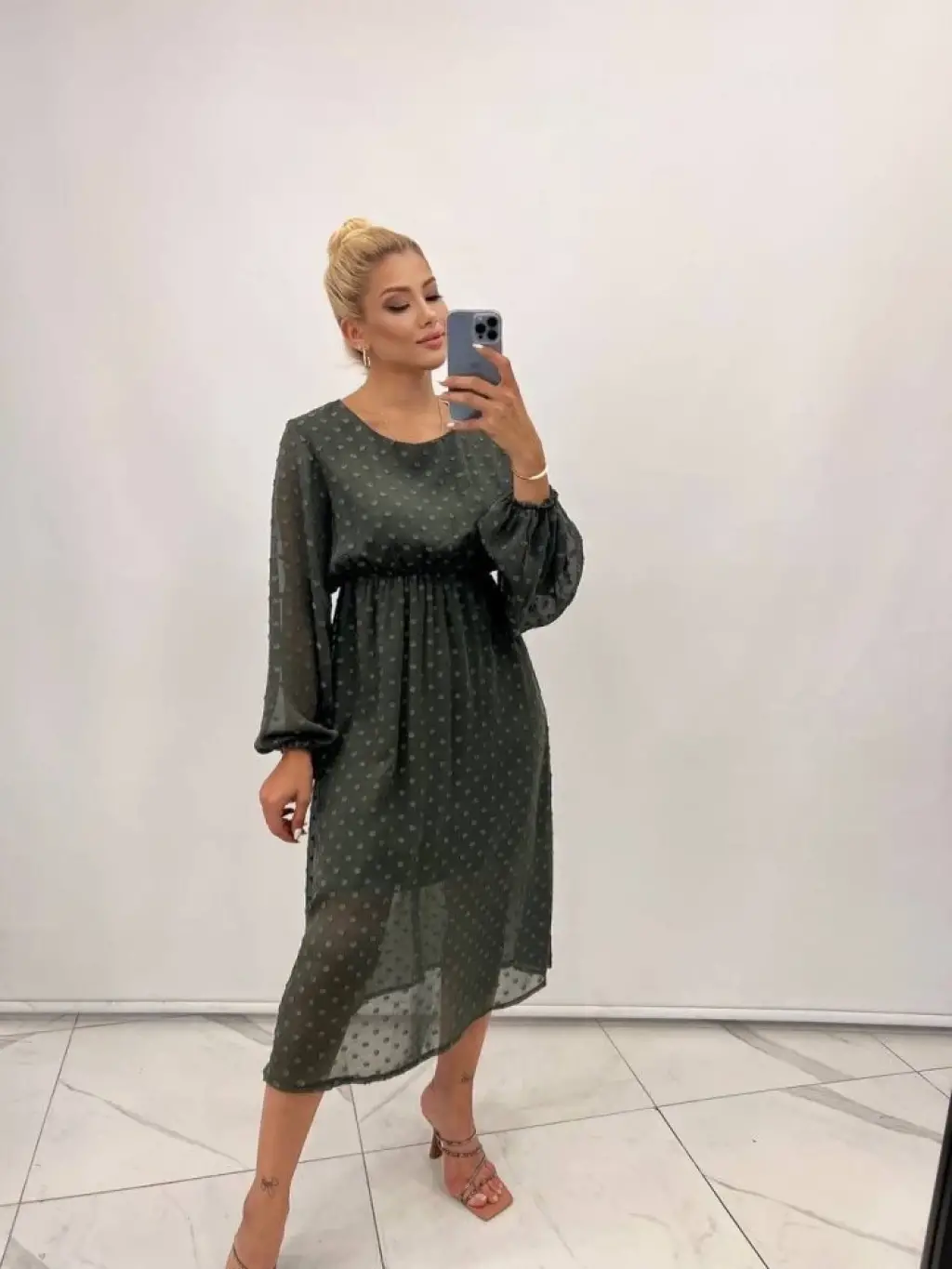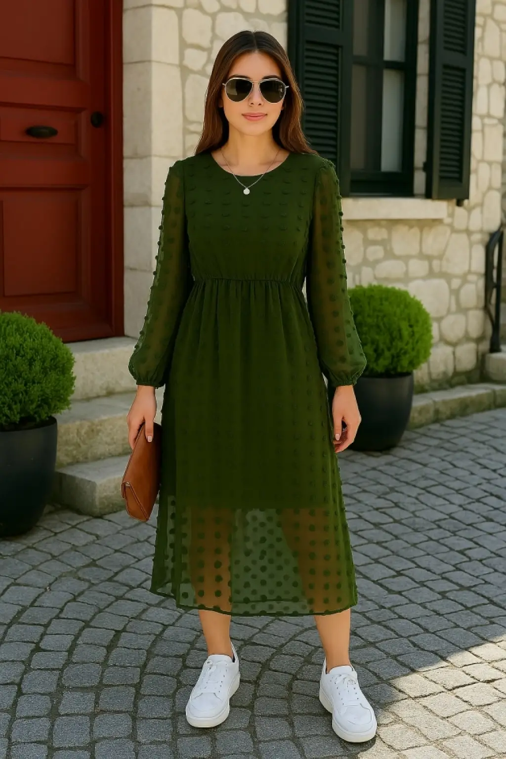 Kadın Uzun Kollu Astar Detay Fırsat ürün Ponpon şifon Elbise