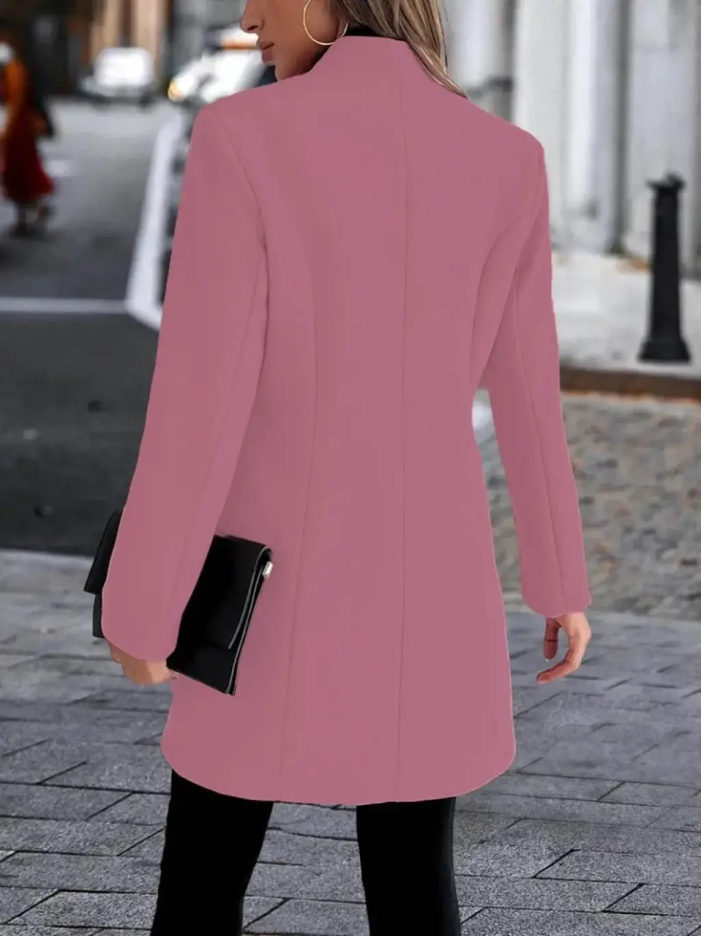 Belden Bağlamalı Top Düğmeli Kaşe Kaban -Siyah