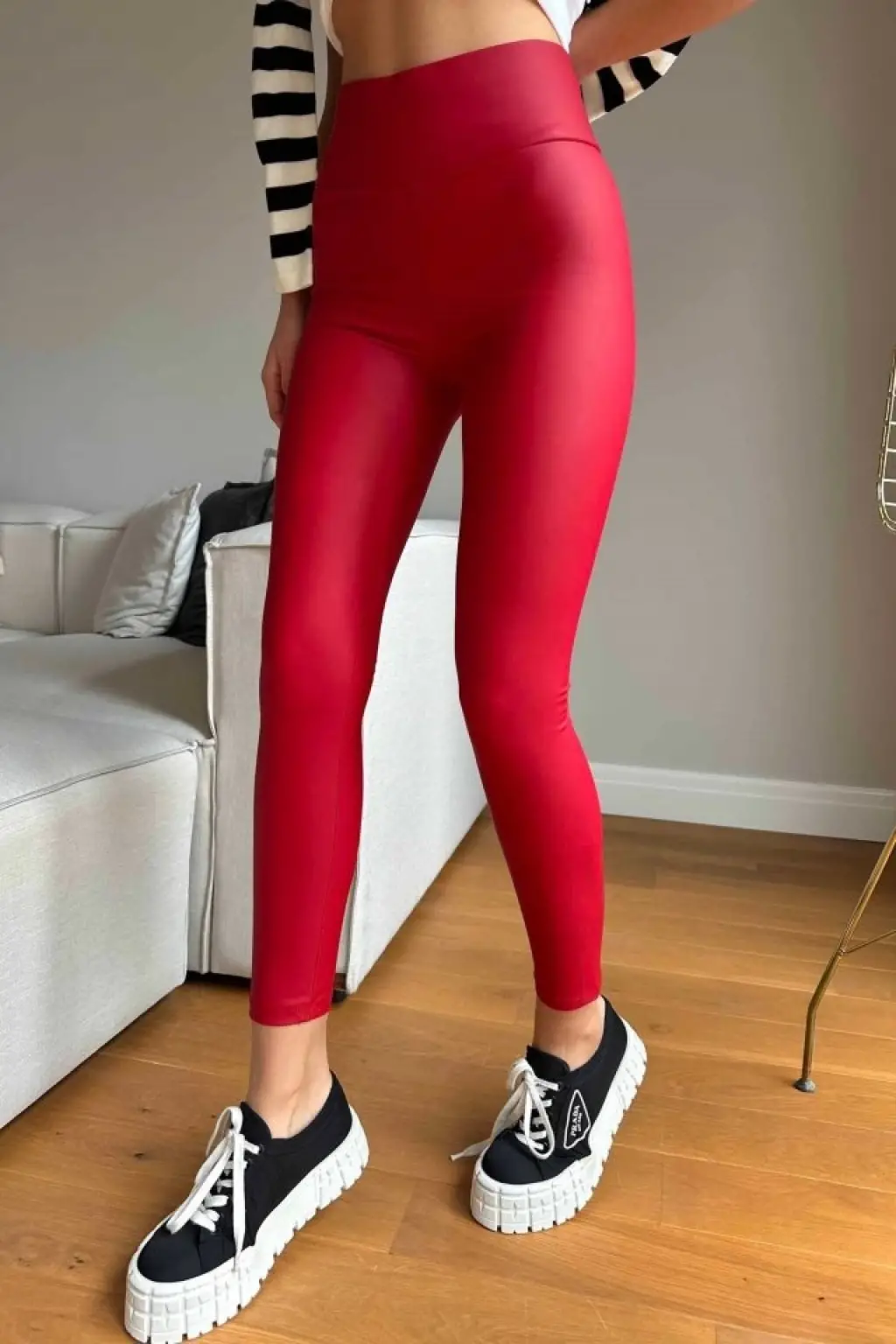 Kadın Yüksek Bel önden Yırtmaçlı Deri Tayt