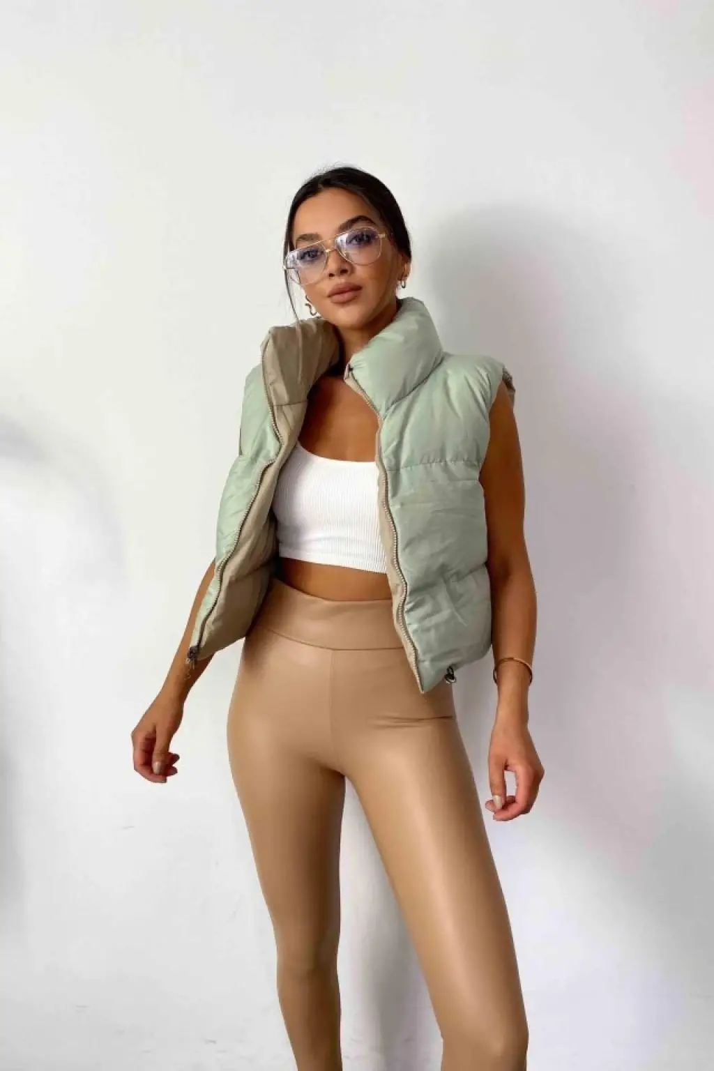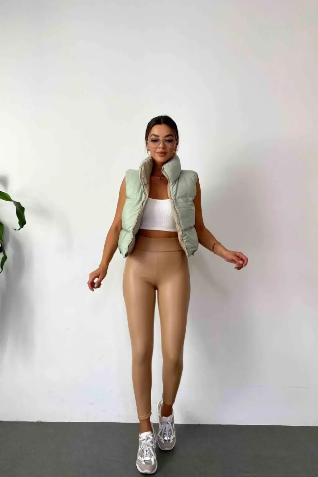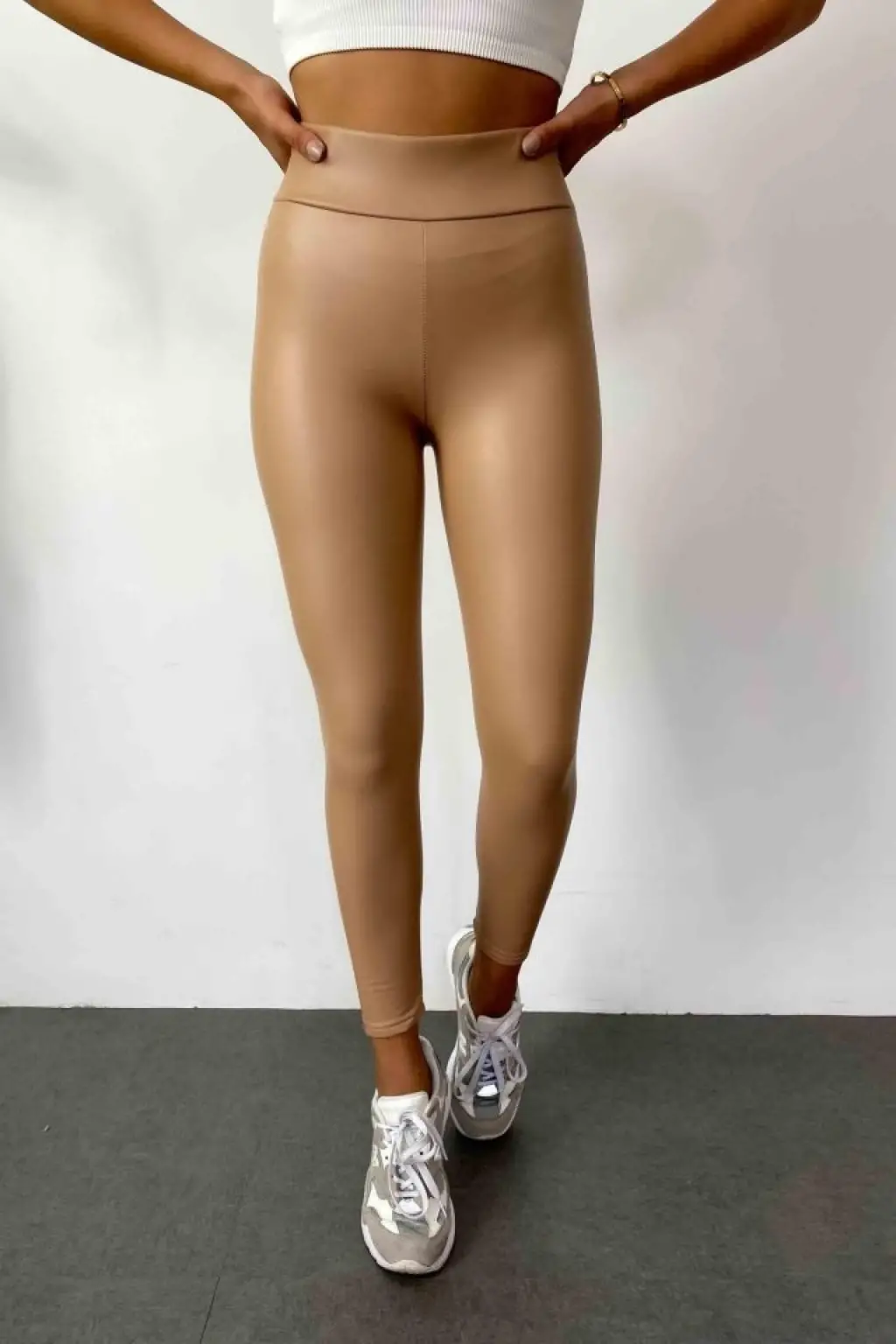 Kadın Yüksek Bel Içi şardunlu Deri Tayt