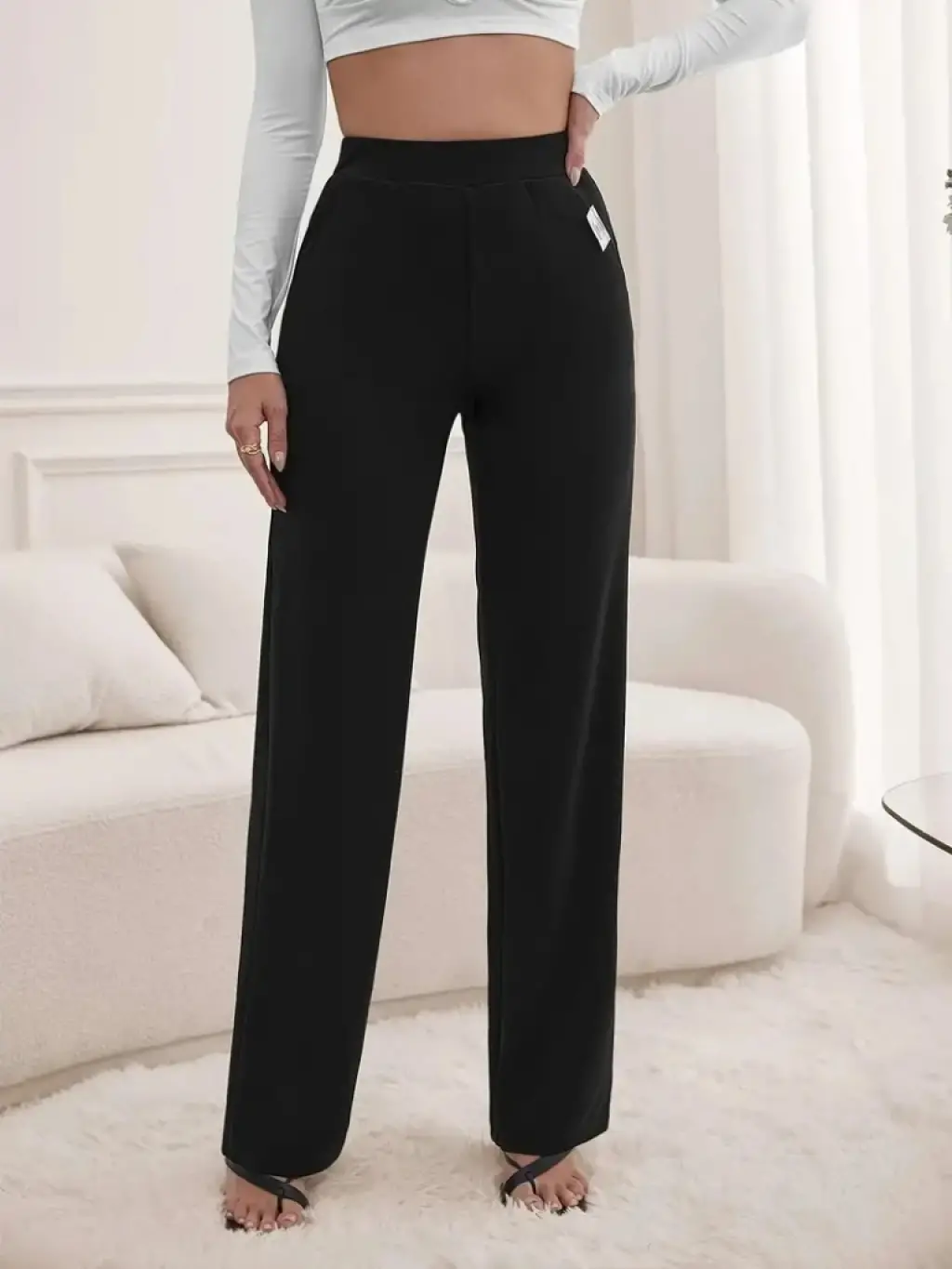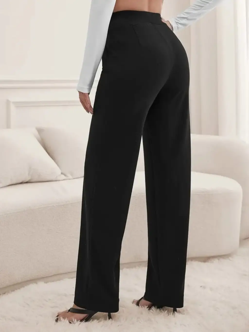 Kadın Yüksek Bel Cepli Geniş Kesim Ithal Krep Pantolon
