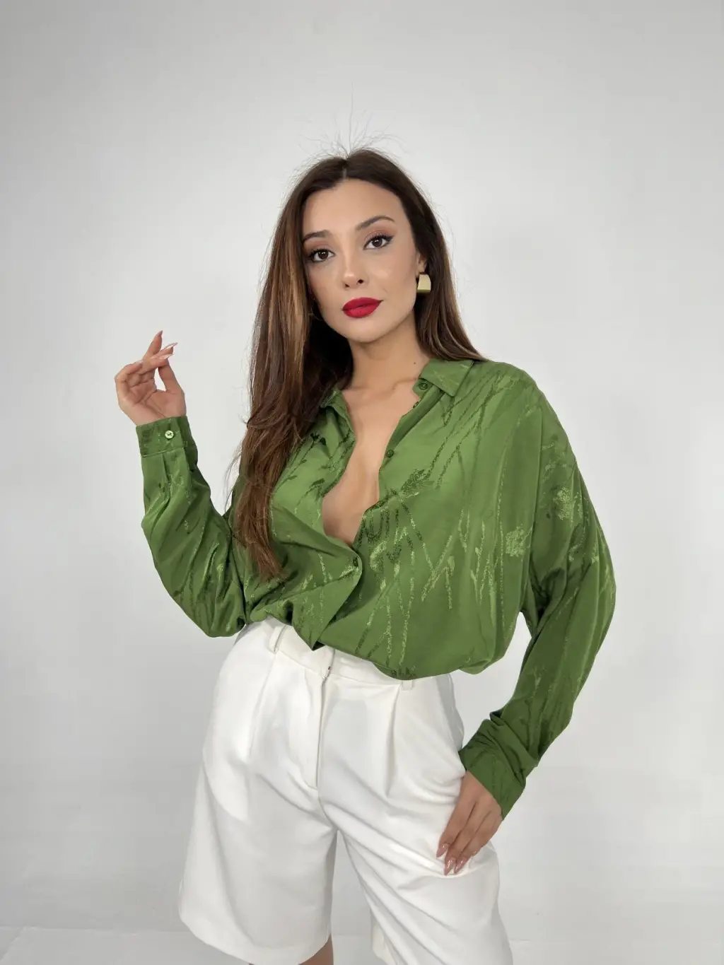 Kadın Uzun Kollu Yuvarlak Yakalı Düğmeli Ithal Krep Bluz