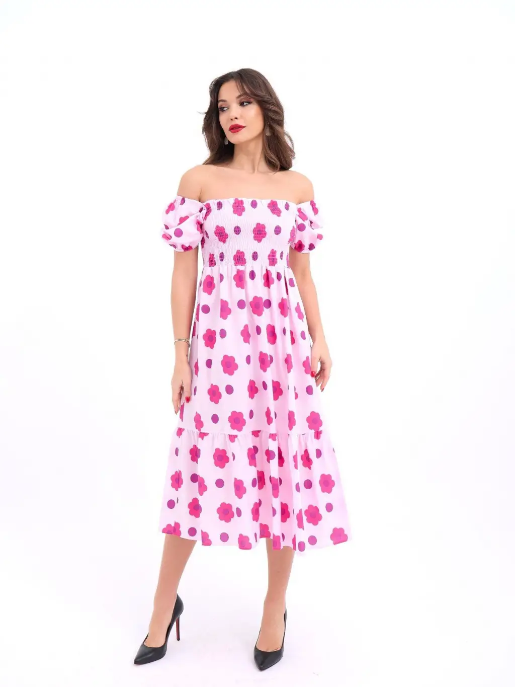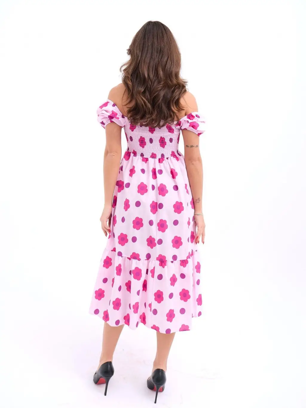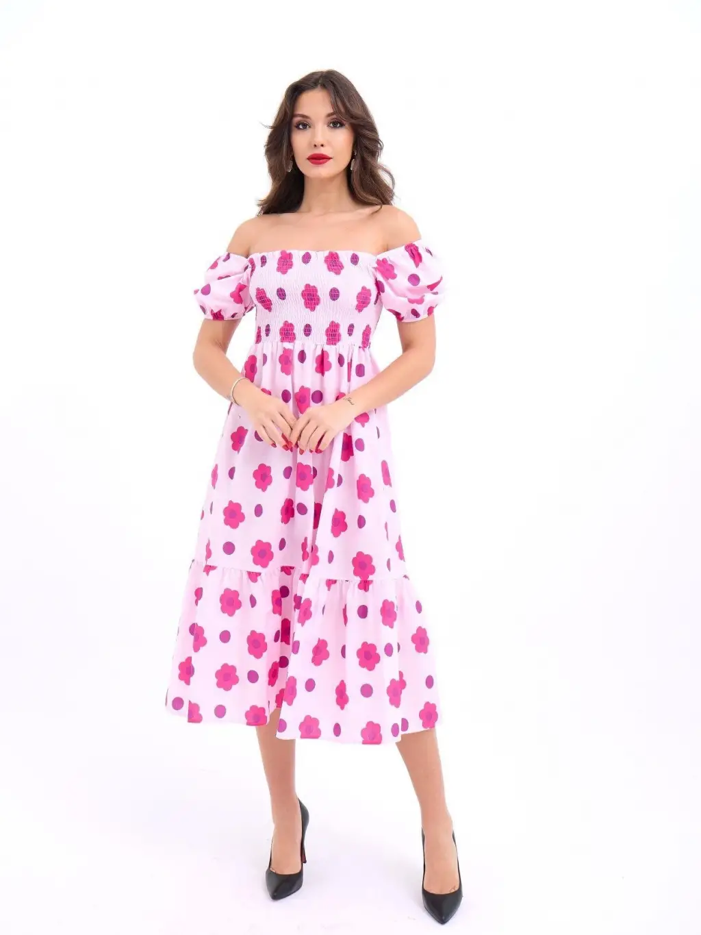 Kadın Kısa Kollu Madonna Yaka önü Kısa Arkası Uzun Ithal Krep Elbise