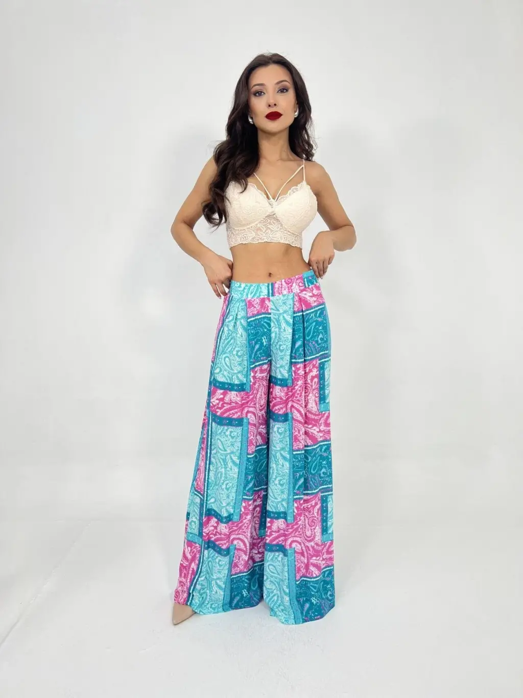 Geniş Paça Pileli Pantolon 6718 - Krem