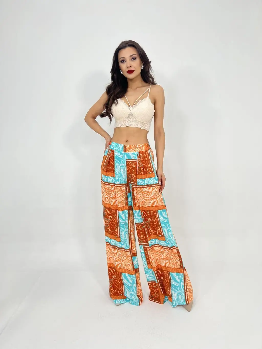 Kadın Yüksek Bel Geniş Paça Detaylı Cepli Ithal Krep Pantolon