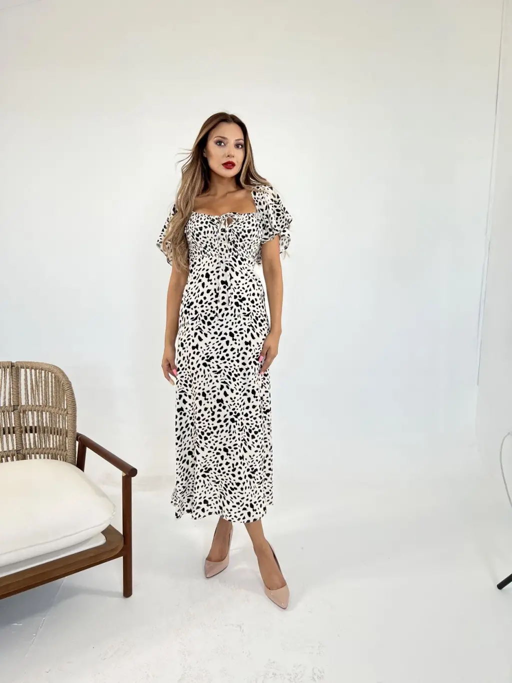 Kadın Kısa Kollu Madonna Yaka önü Kısa Arkası Uzun Ithal Krep Elbise