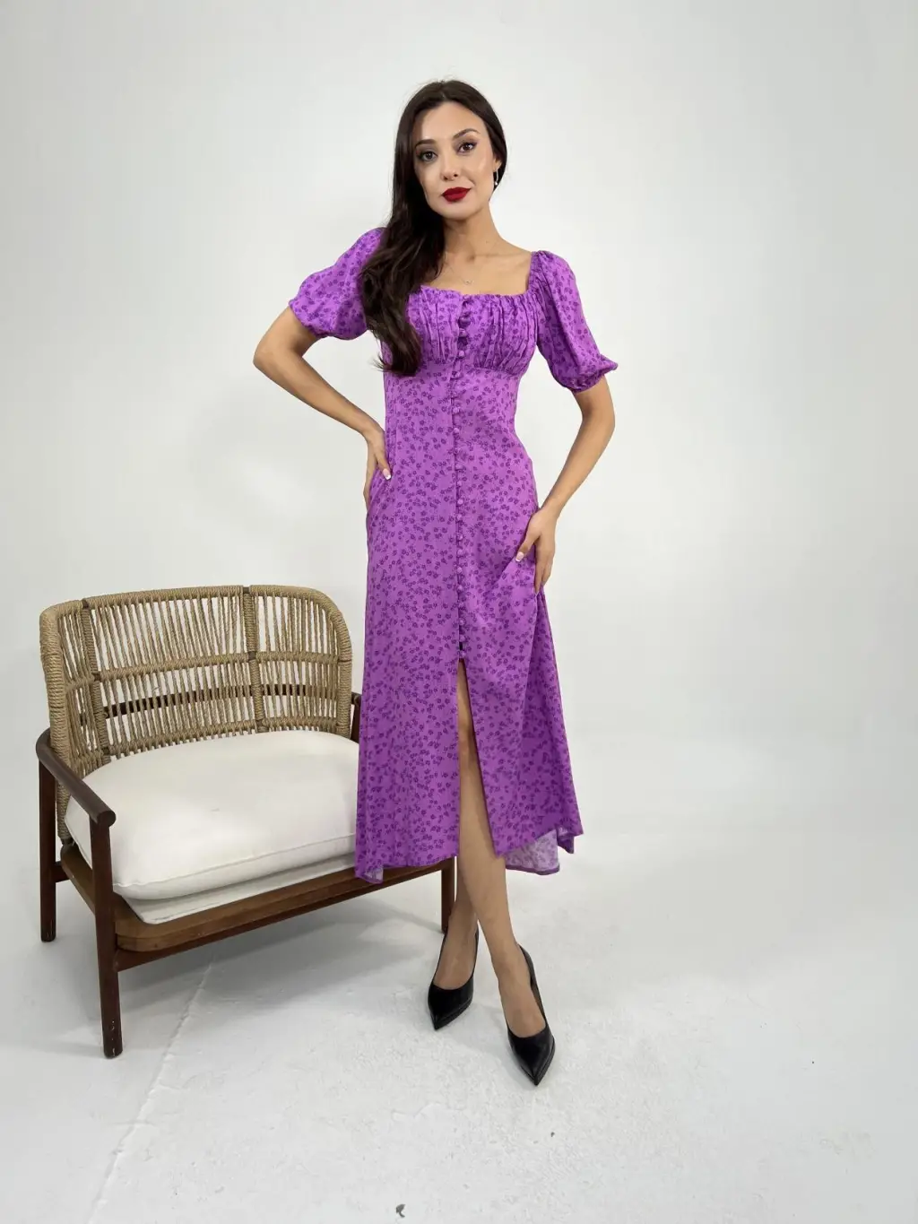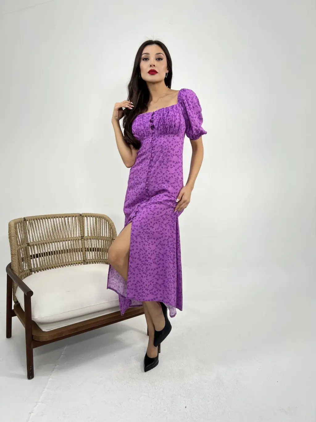 Kadın Kısa Kollu Balıkçı Yaka Derin Yırtmaç Detay Viskon Elbise
