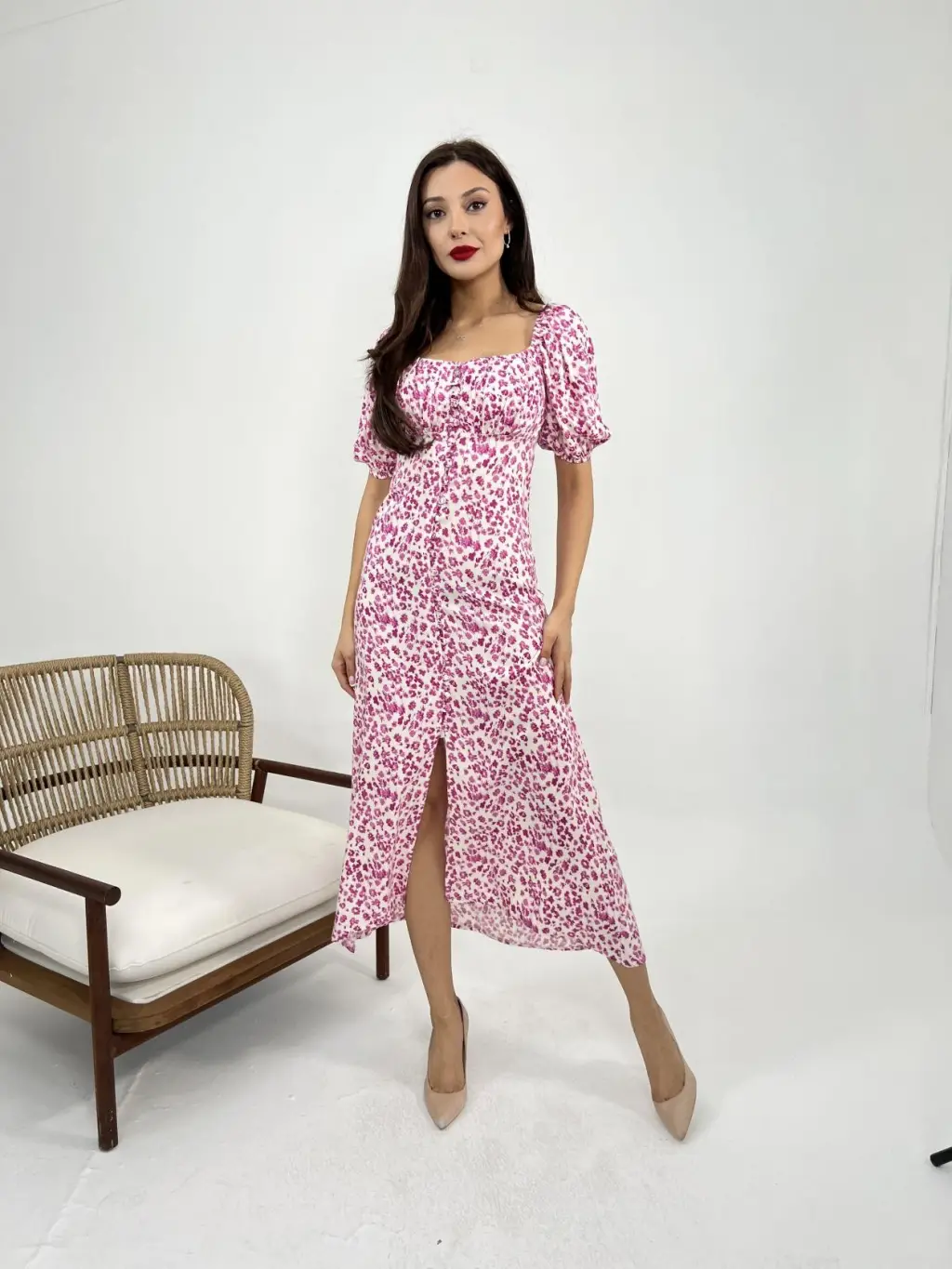Kadın Kısa Kollu Balıkçı Yaka Derin Yırtmaç Detay Viskon Elbise