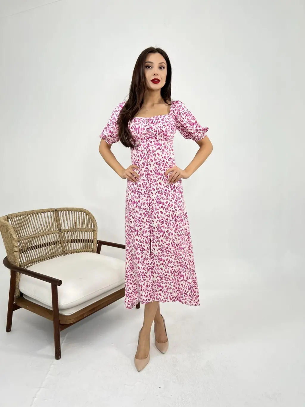 Kadın Kısa Kollu Yakadan Ve Etekten Fermuarlı Midi Viskon Iki Iplik Elbise