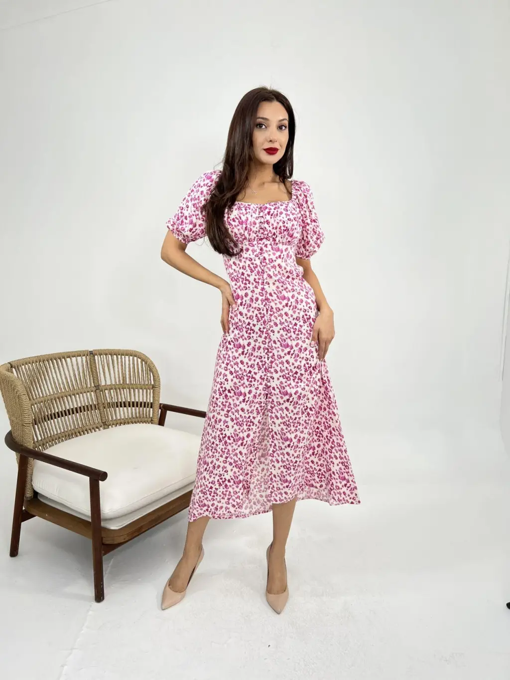 Kadın Kısa Kollu Madonna Yaka önü Kısa Arkası Uzun Ithal Krep Elbise