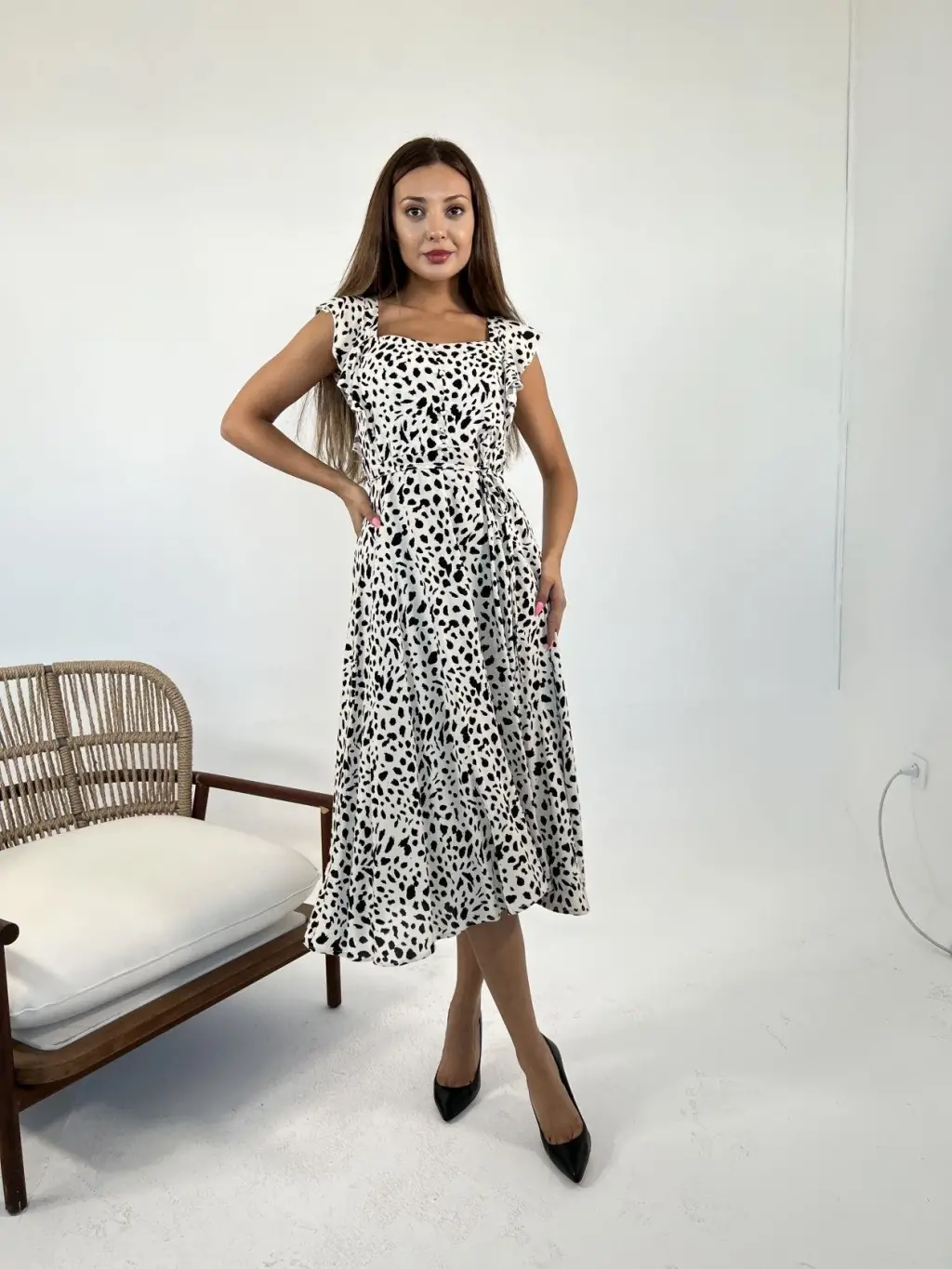 Kadın Askılı Kruvaze Yakalı Fırfırlı Janjan Krep Elbise