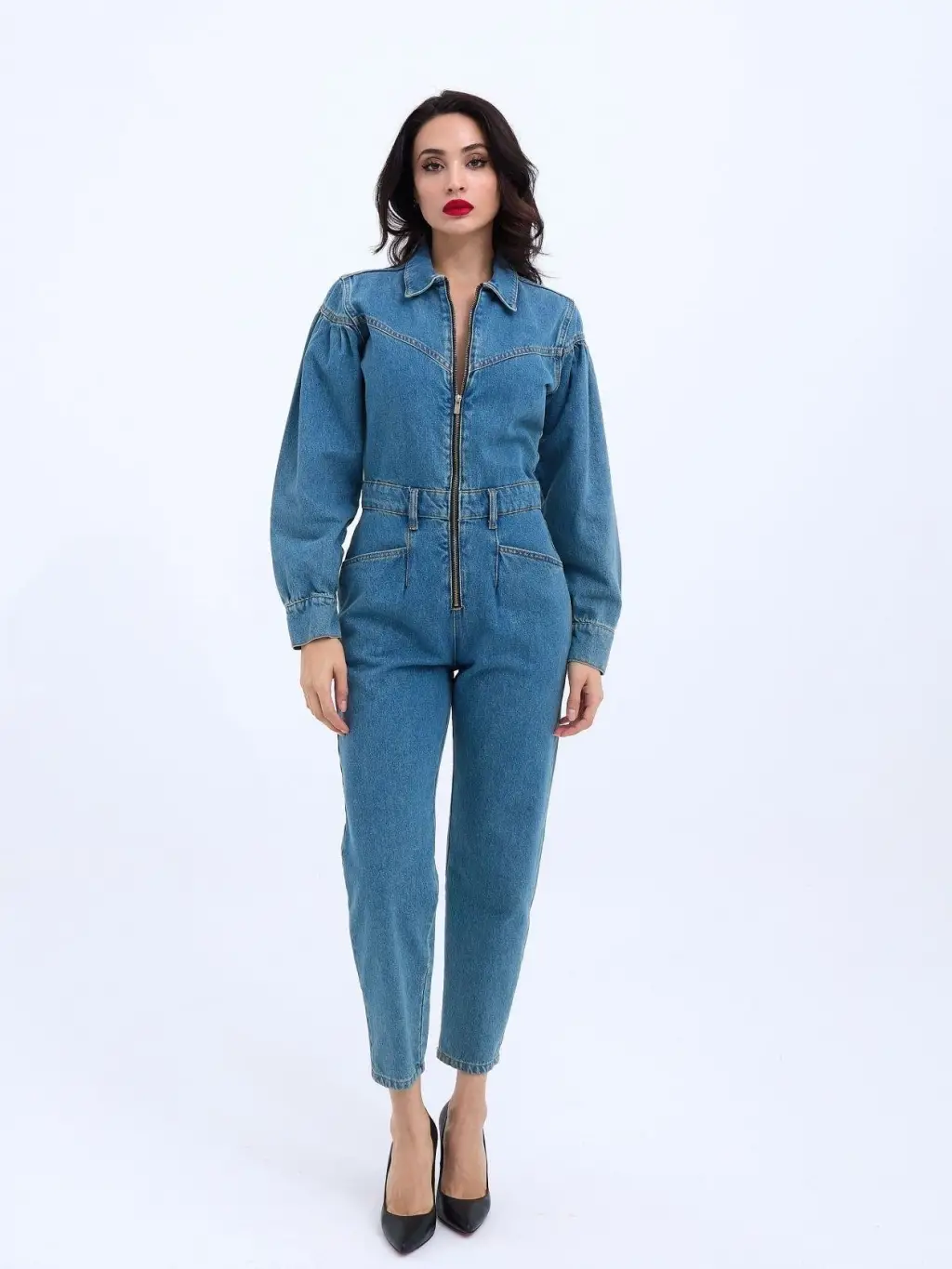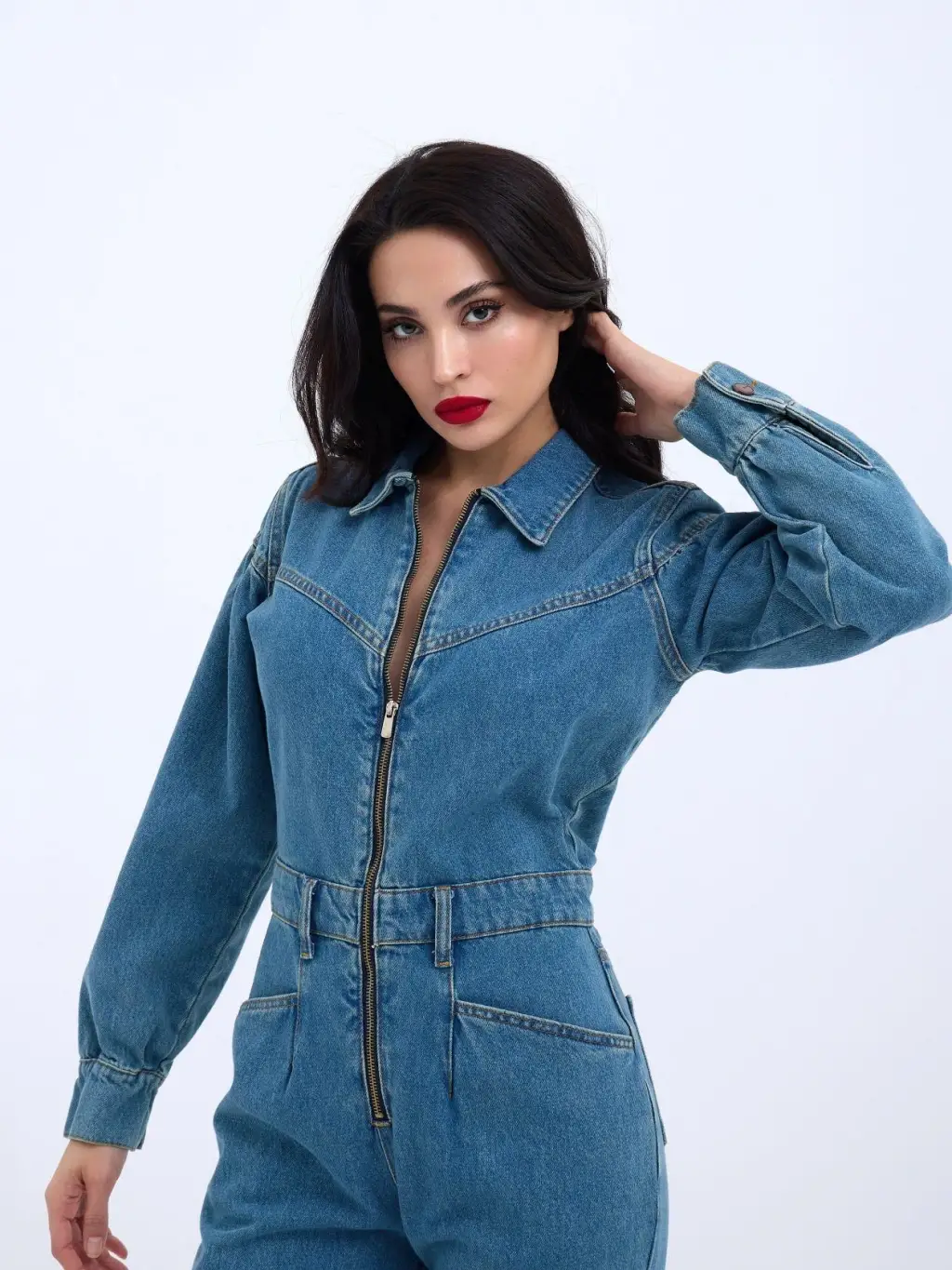 Kadın Uzun Kollu Asimetrik Fermuar Detaylı Viskon Iki Iplik Bluz