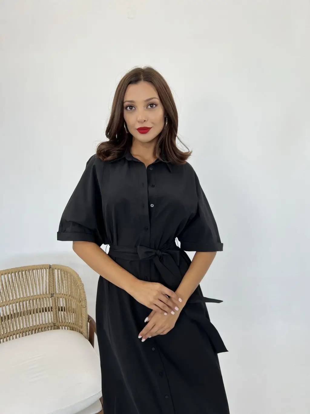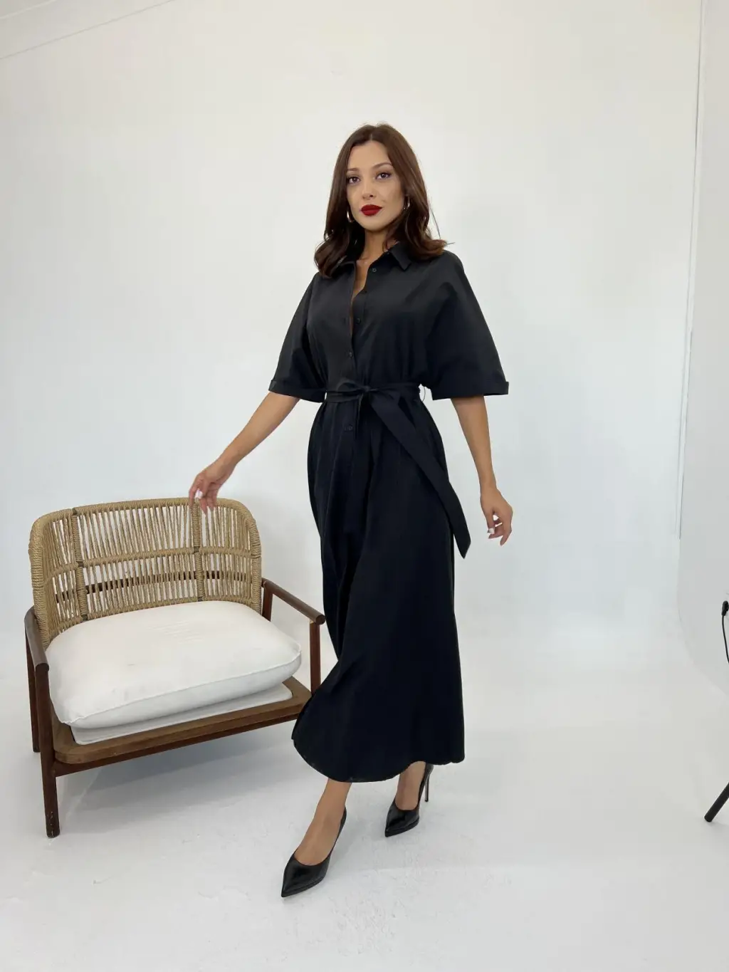 Kadın Kısa Kollu Yakadan Ve Etekten Fermuarlı Midi Viskon Iki Iplik Elbise
