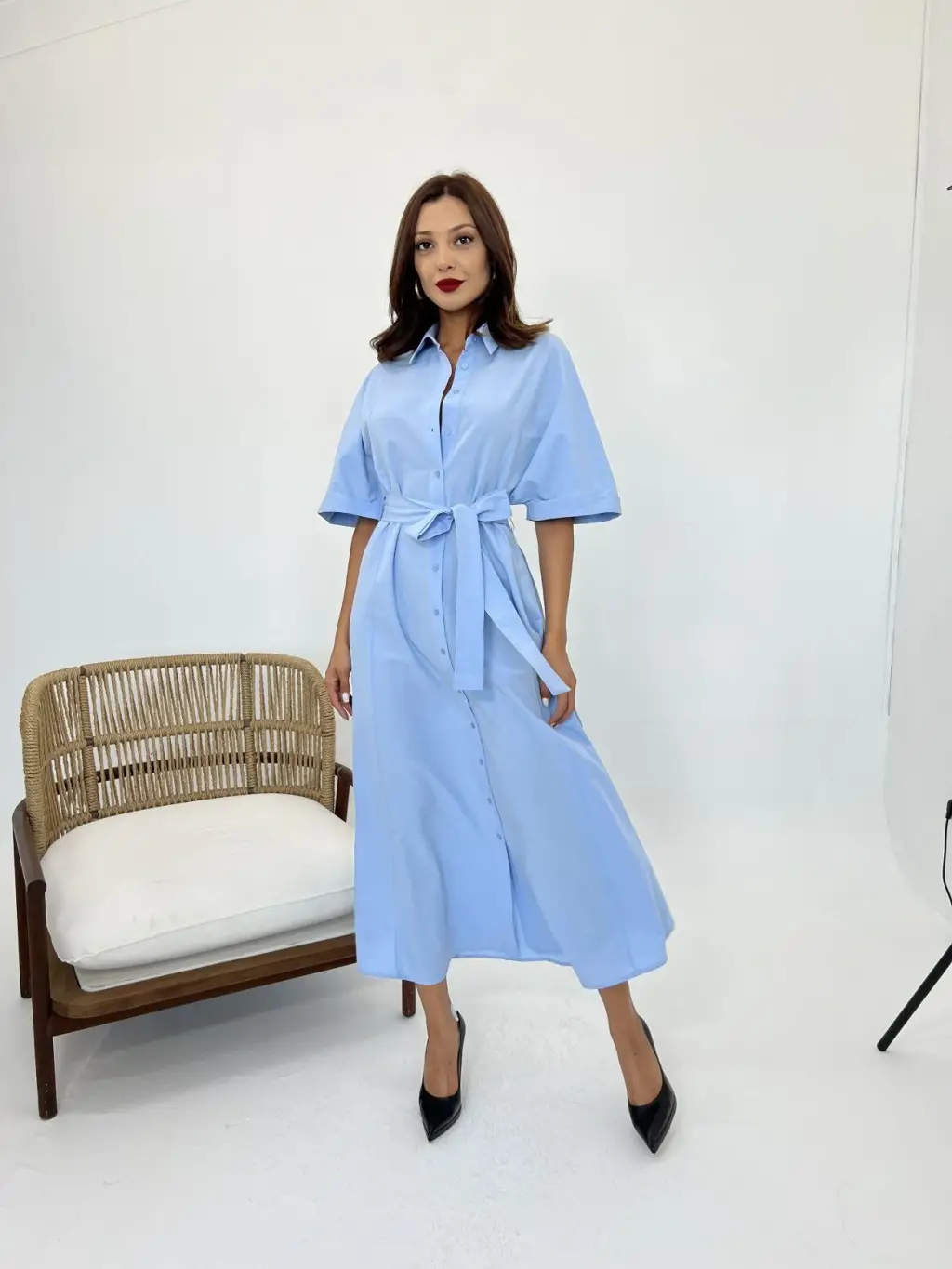Kadın Kısa Kollu Yakadan Ve Etekten Fermuarlı Midi Viskon Iki Iplik Elbise