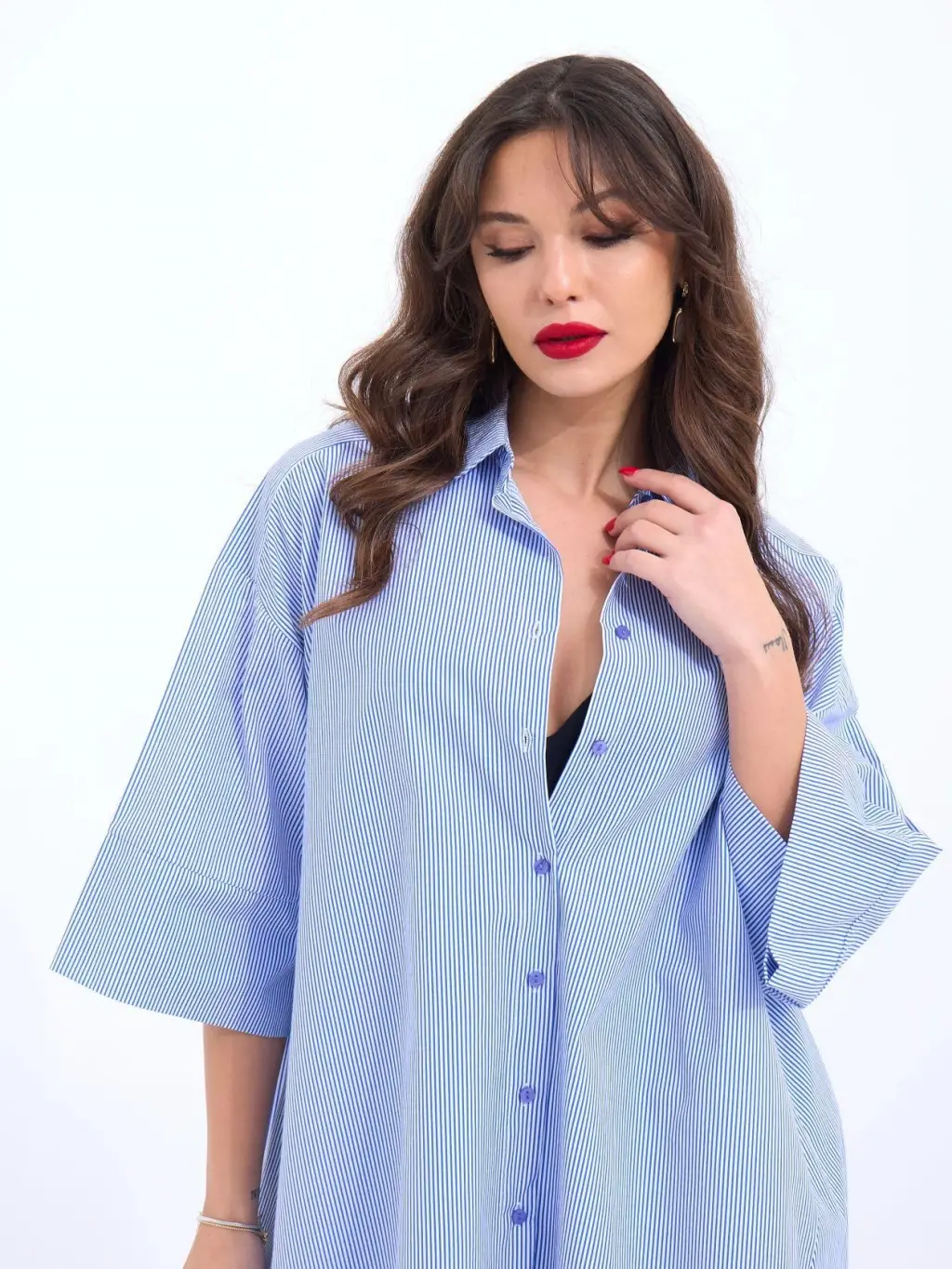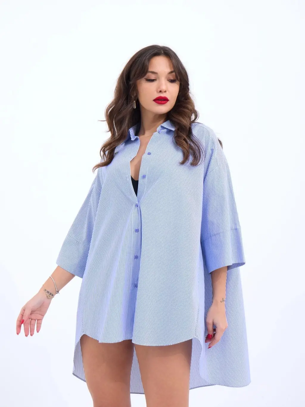 3900 Oversize Uzun Basic Gömlek - E. Mavi