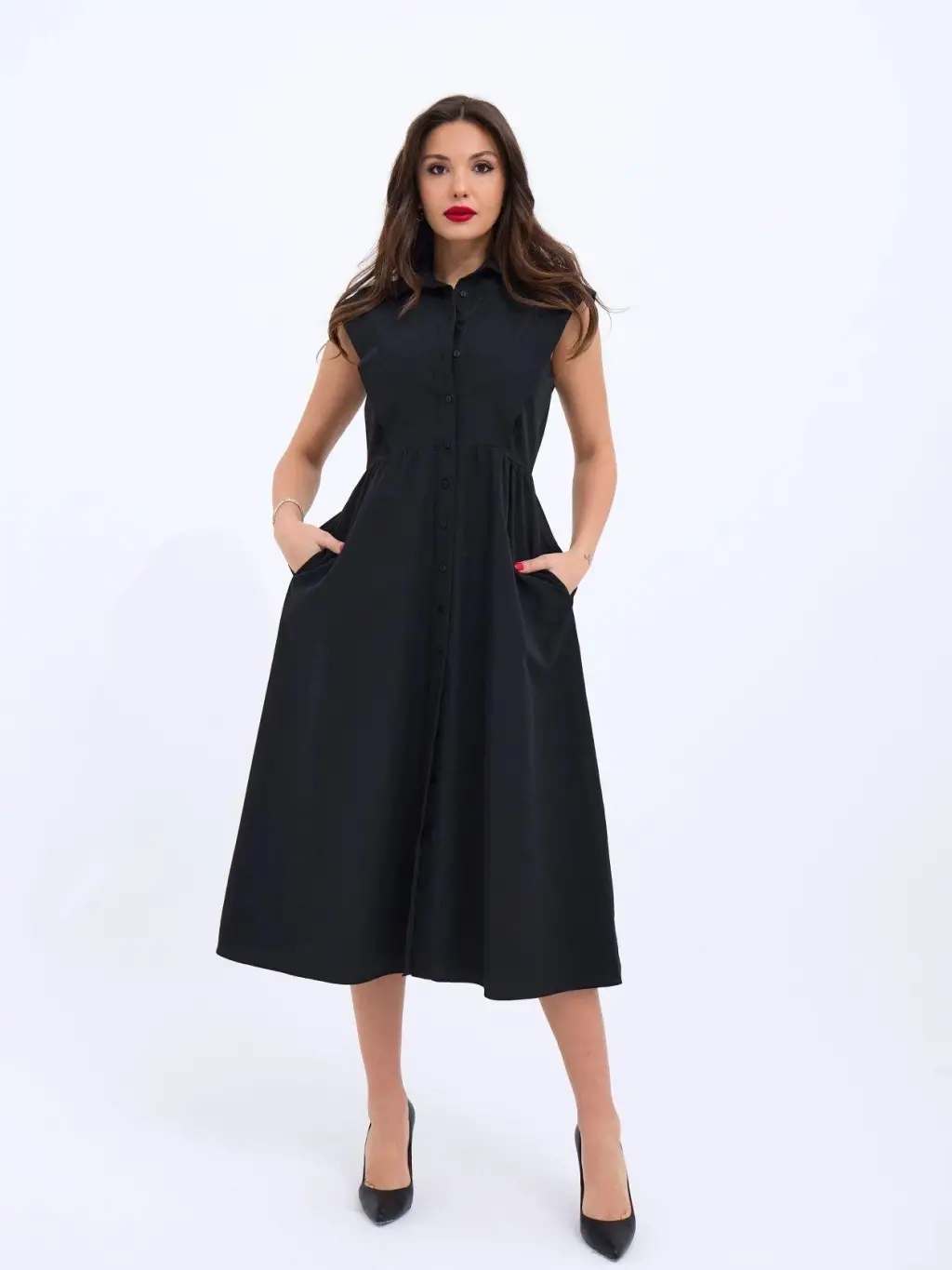 Kadın Ip Askılı Yuvarlak Yakalı Cepli Uzun Viskon Elbise