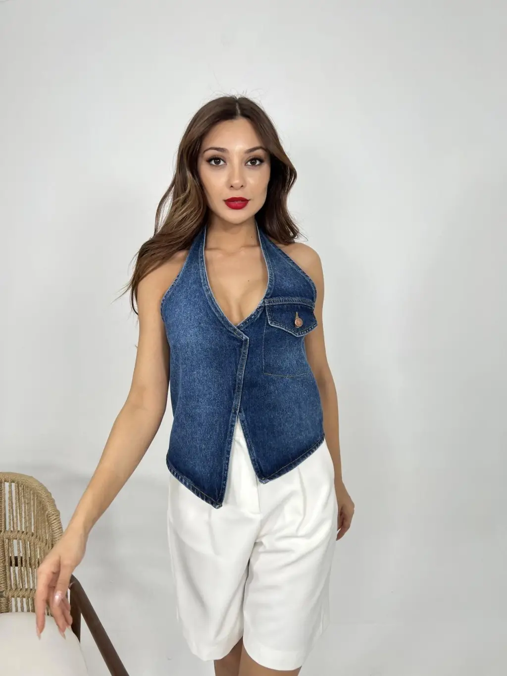 Düğme Detay Cepli Yelek