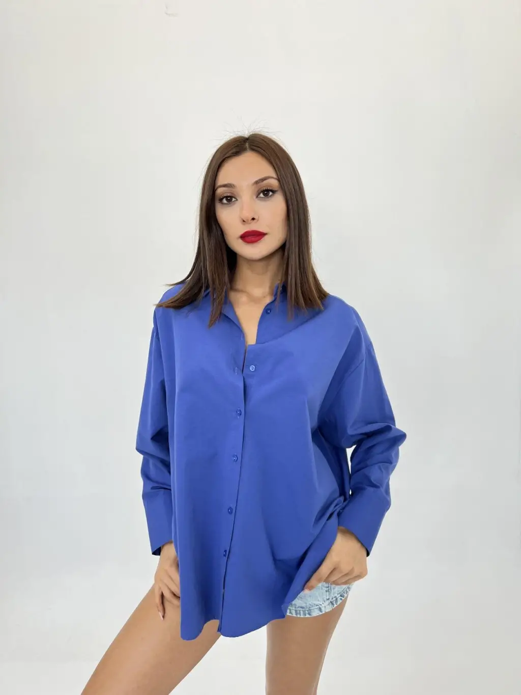 3900 Oversize Uzun Basic Gömlek - E. Mavi