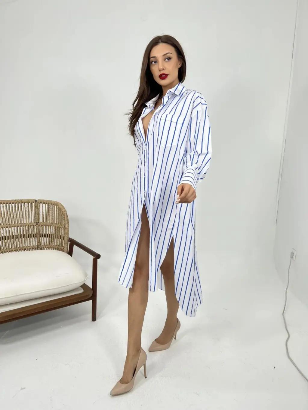 Çizgili Oversize Gömlek 20293 - Bordo