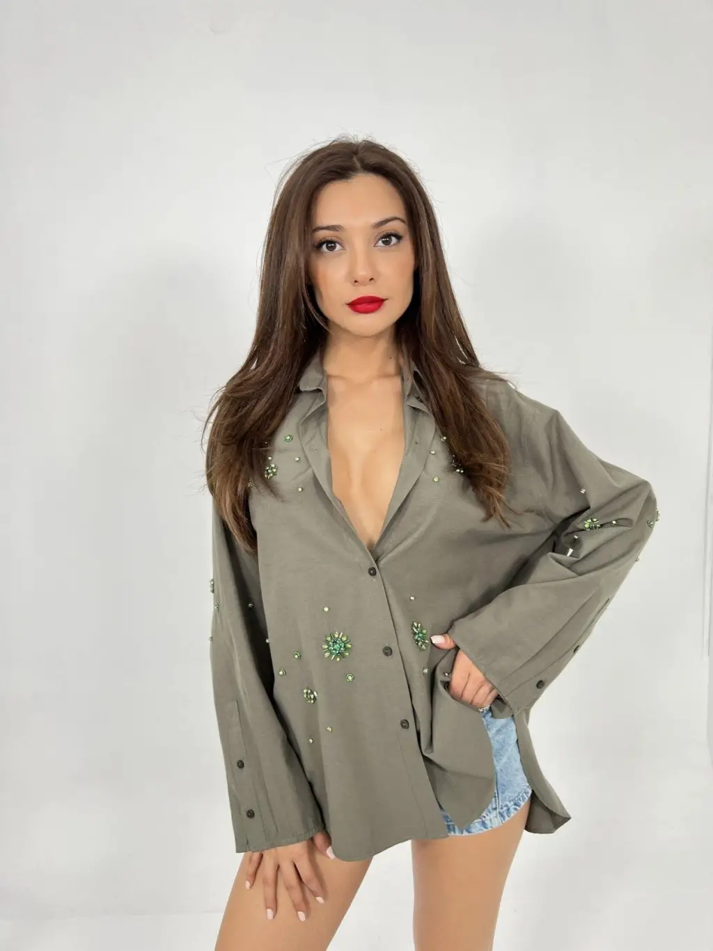 Kadın Uzun Kollu V Yakalı Desenli Dalgıç Bluz