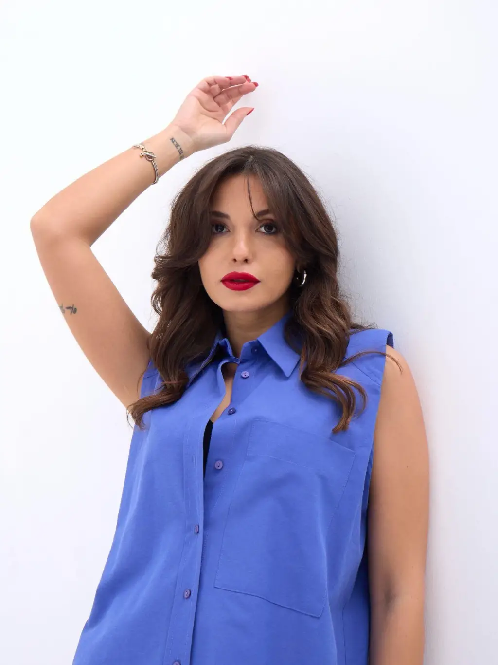 Kadın Uzun Kollu V Yaka Düğme Detaylı Yumoş Bluz