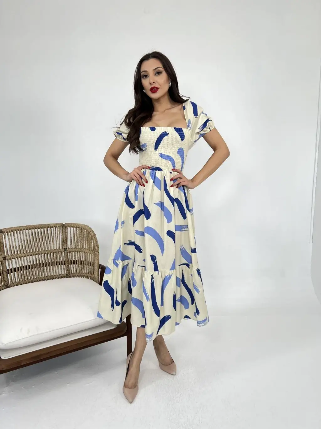 Kadın Kısa Kollu Yakadan Ve Etekten Fermuarlı Midi Viskon Iki Iplik Elbise