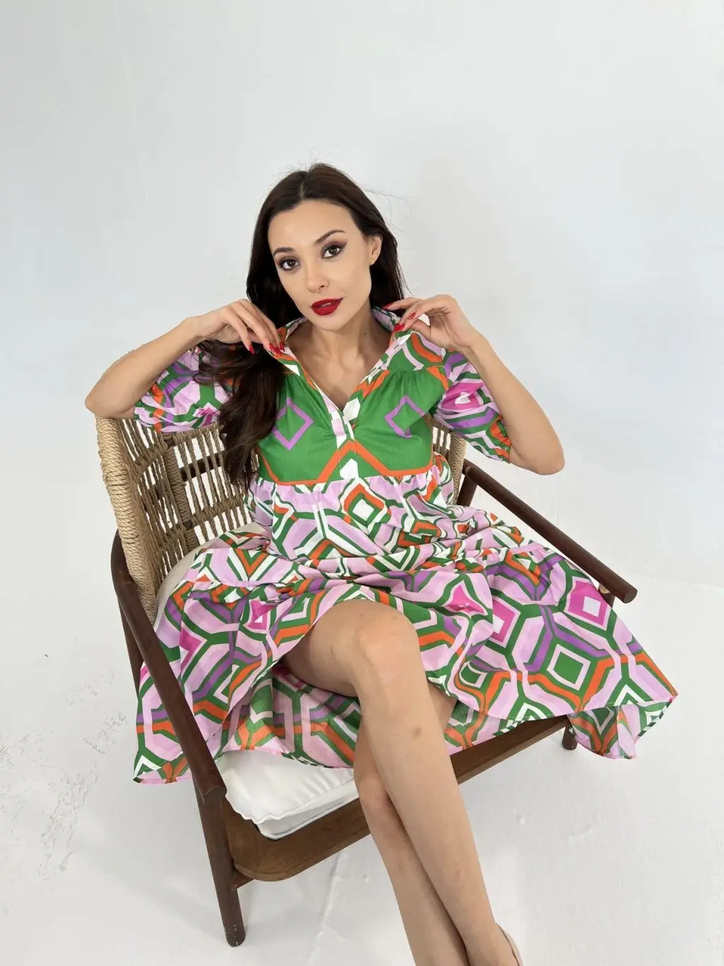 Kadın Kısa Kollu Madonna Yaka önü Kısa Arkası Uzun Ithal Krep Elbise