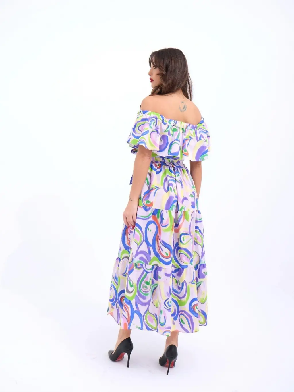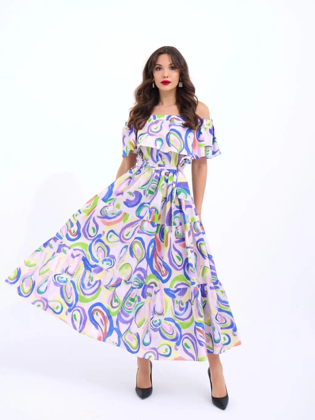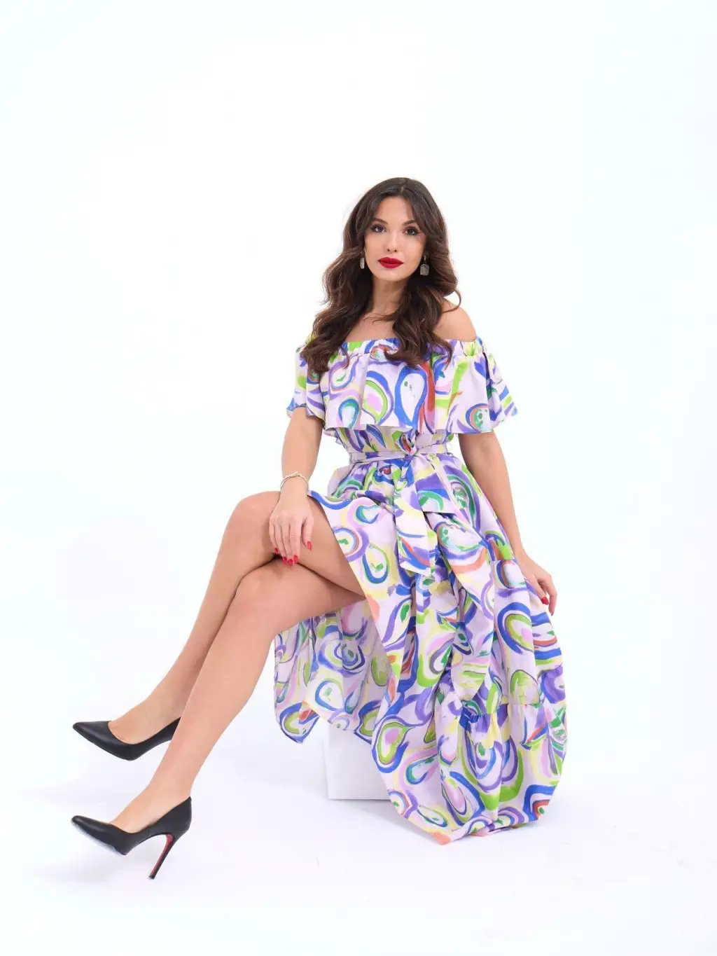 Kadın Ithal Krep Kumaş Kruvaze Yaka Eteği Kloş Kolsuz Mini Elbise