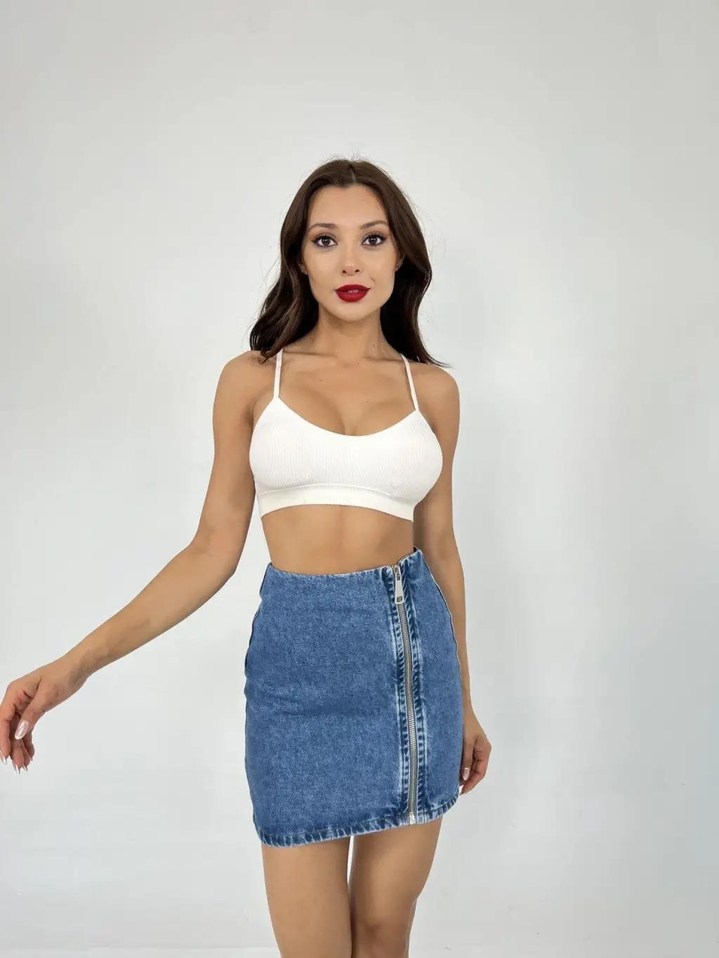 Fermuarlı Kaşe Çan Etek -Bej