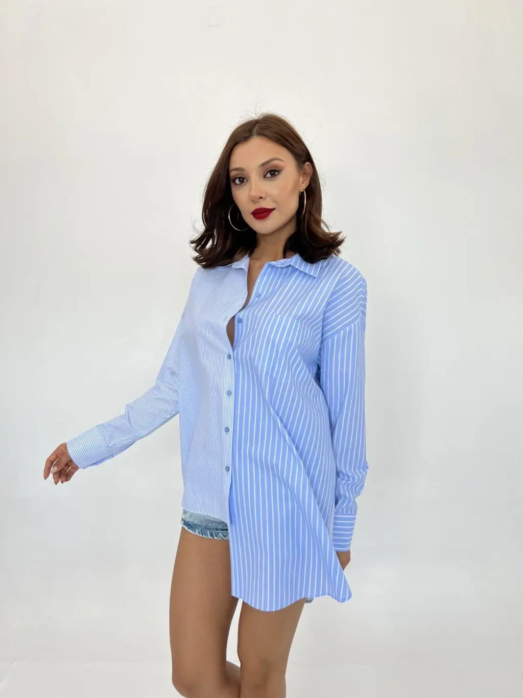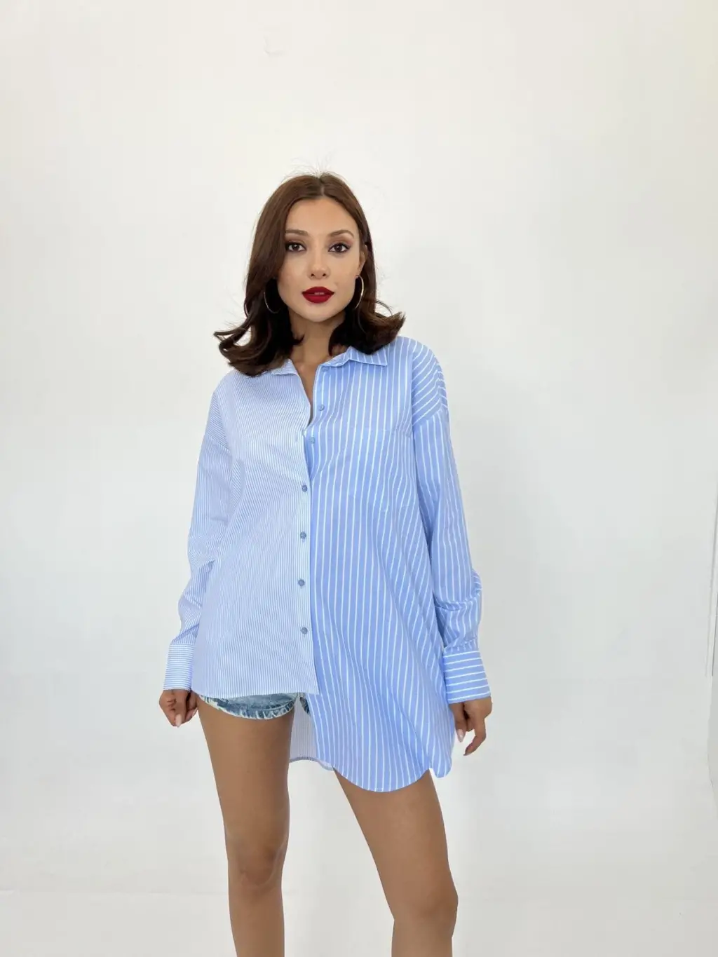 3900 Oversize Uzun Basic Gömlek - E. Mavi