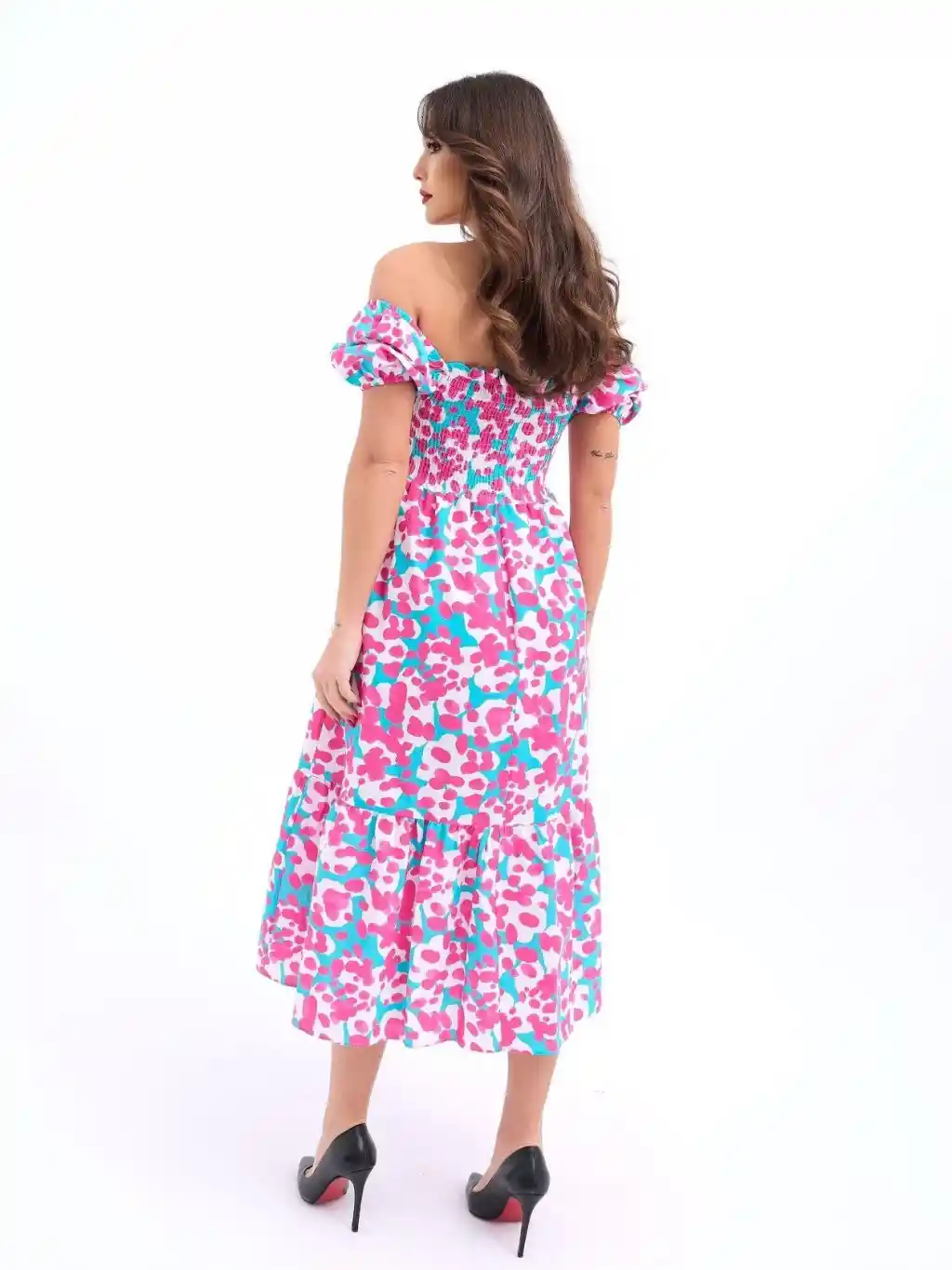 Yarım Düğmeli Kolu Lastikli Yarasa Kol Kot Elbise -Laci