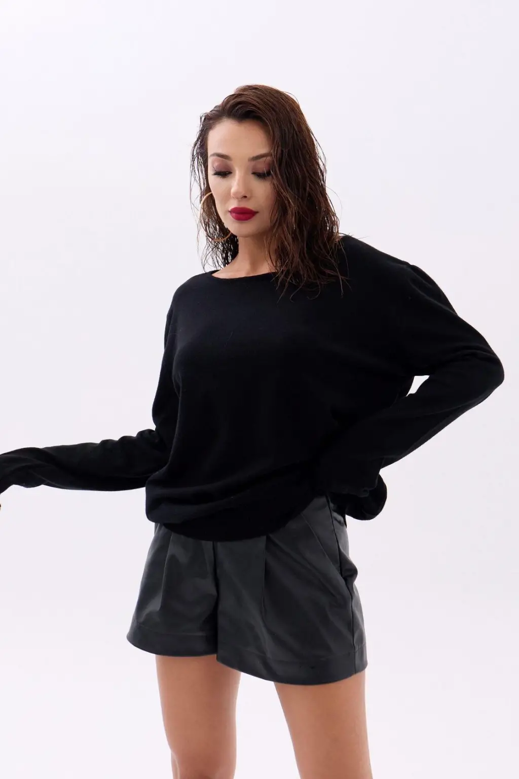 Kadın Uzun Kollu Balıkçı Yakayanlar Yırtmaçlı Kaşkorse Bluz