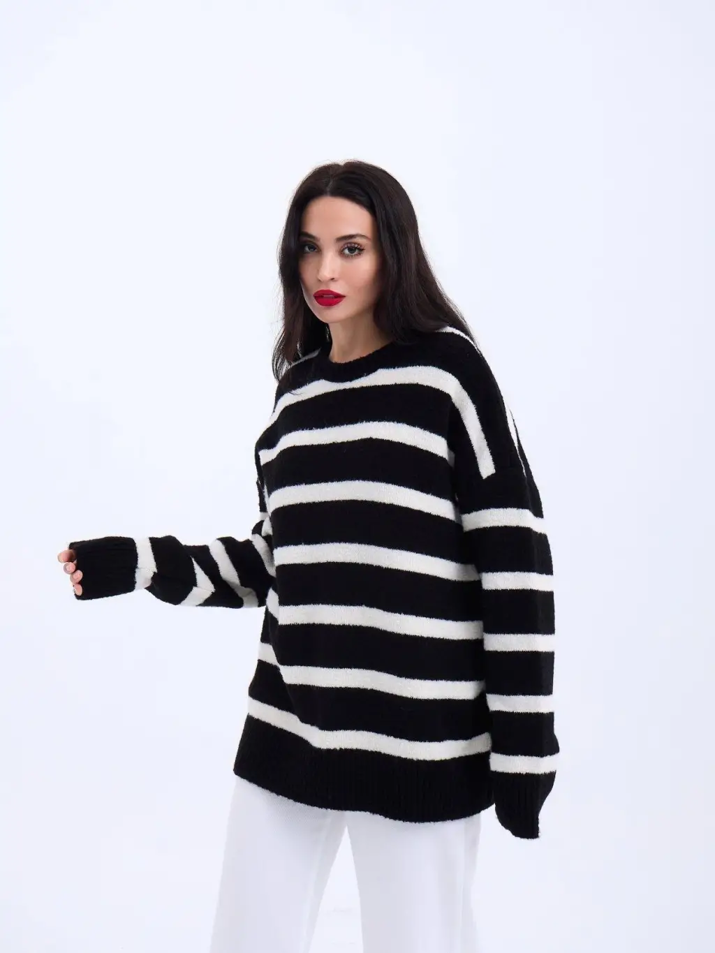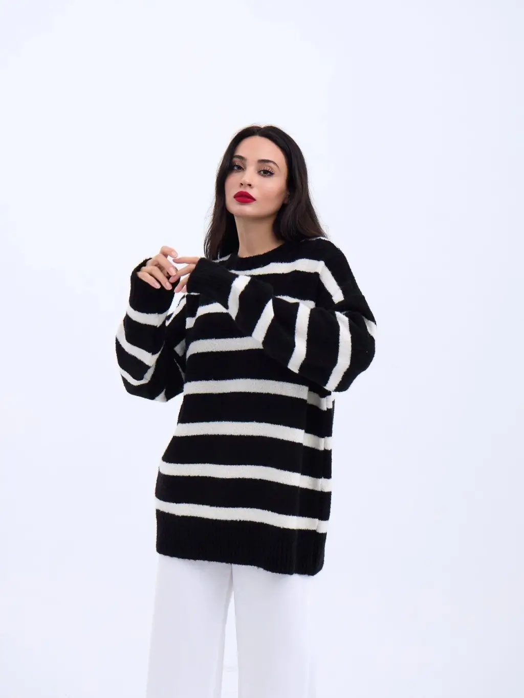 43111 TRİKO ÇİZGİLİ SALAŞ KAZAK-SİYAH-EKRU