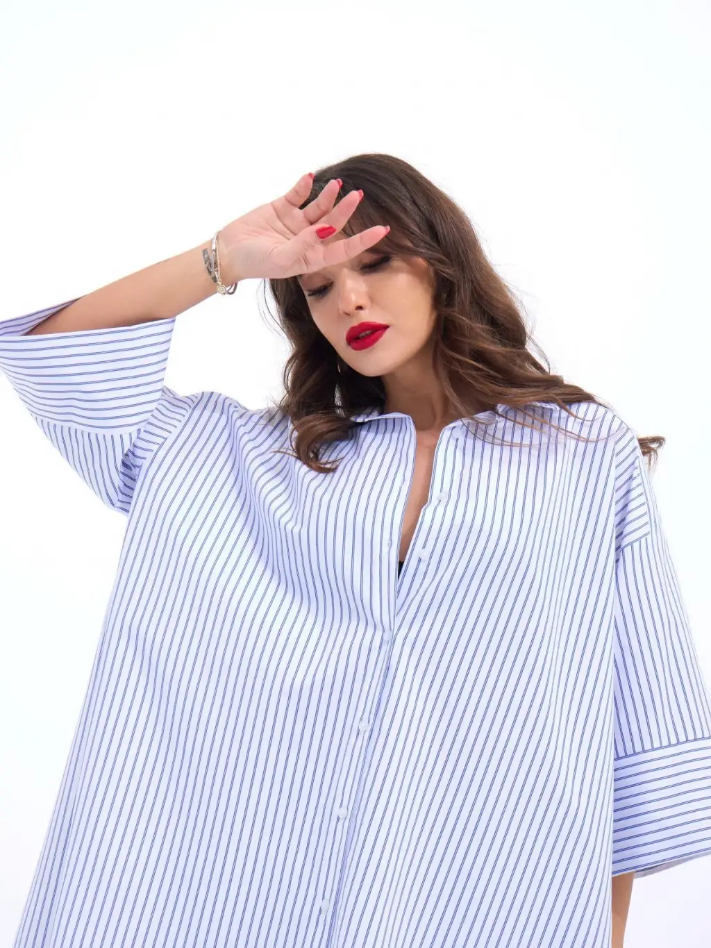 Çizgili Oversize Gömlek 20293 - Bordo