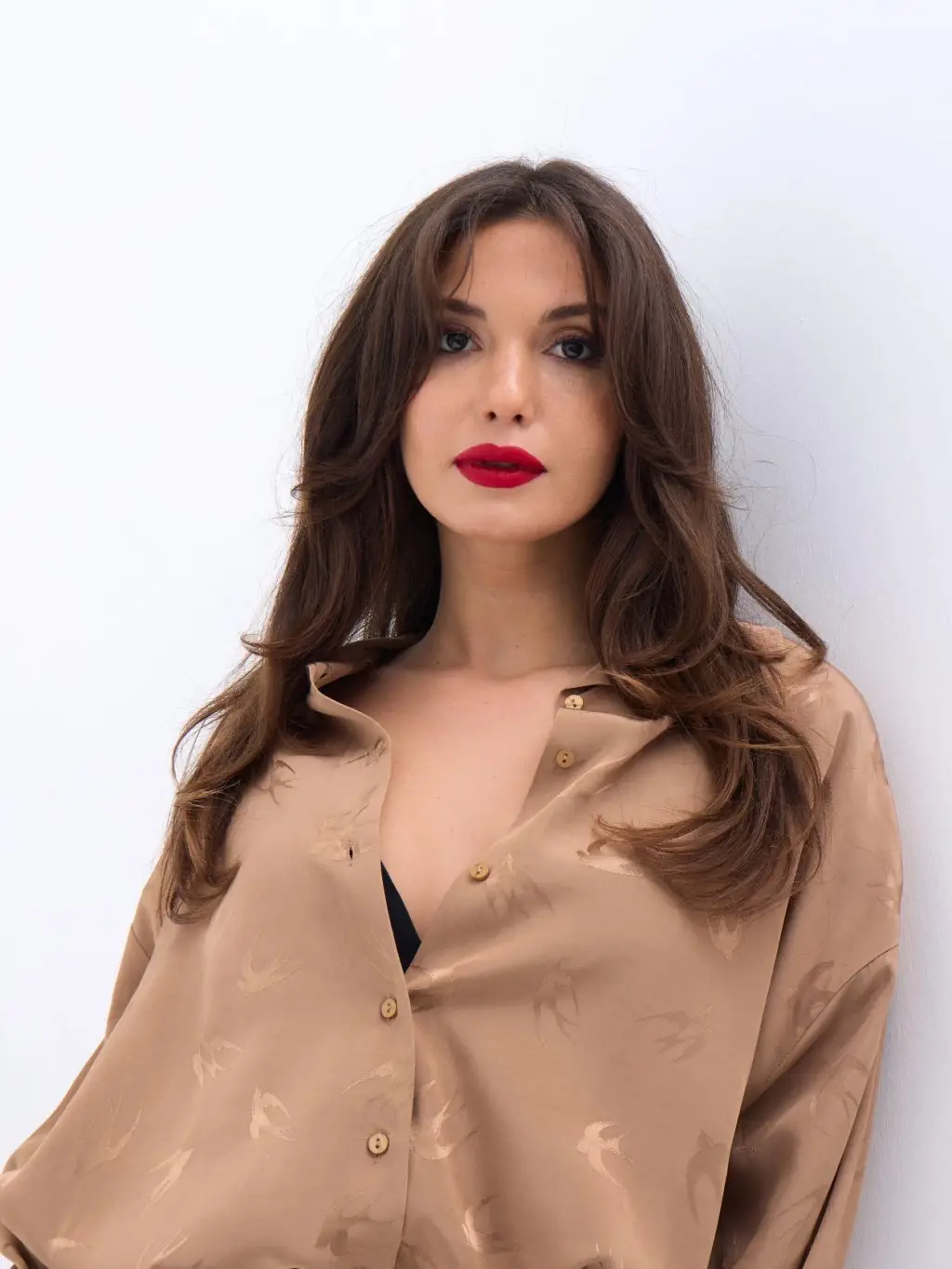 Kadın Uzun Kollu V Yakalı Desenli Dalgıç Bluz