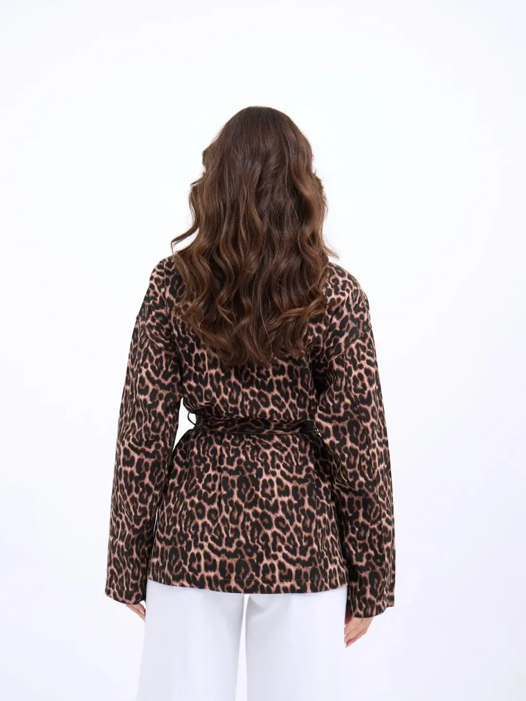 Bej Desenli Ve Önü Düğmeli Keten Elbise
