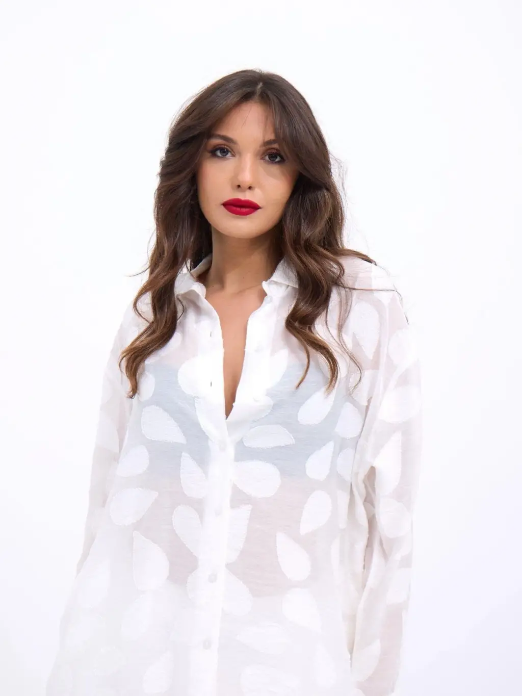 Fırfır Detaylı Düğmeli Kısa Gömlek -Bordo