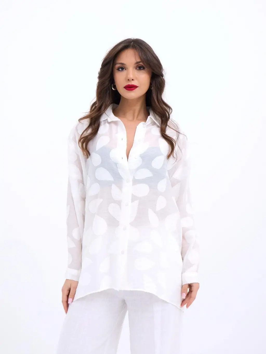 Kadın Uzun Kollu Salaş Gömlek Ve şort Keten Ikili Takım