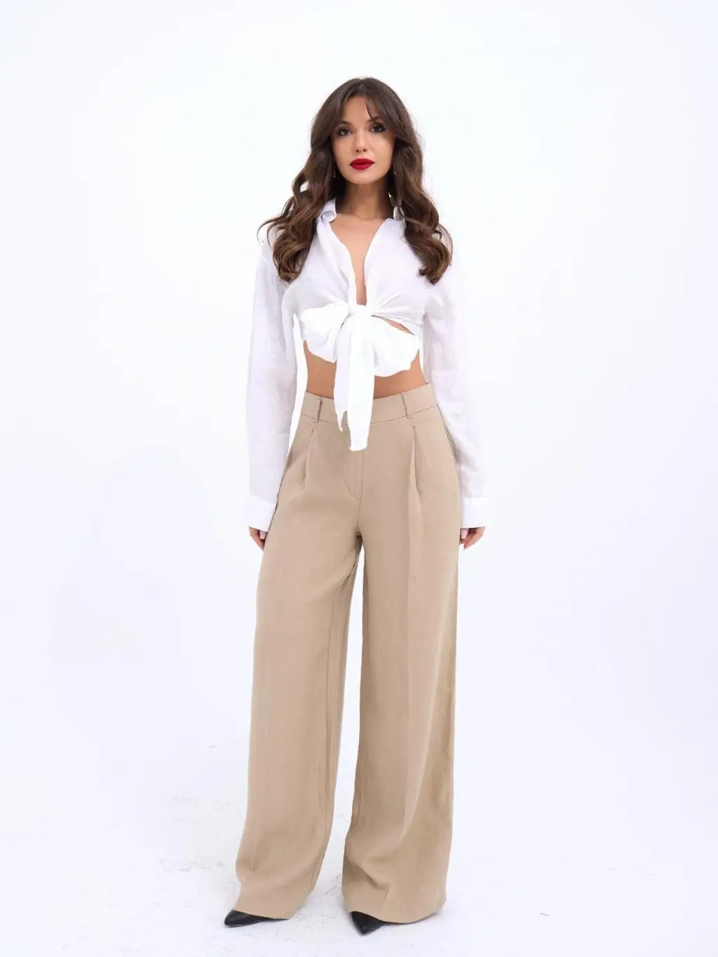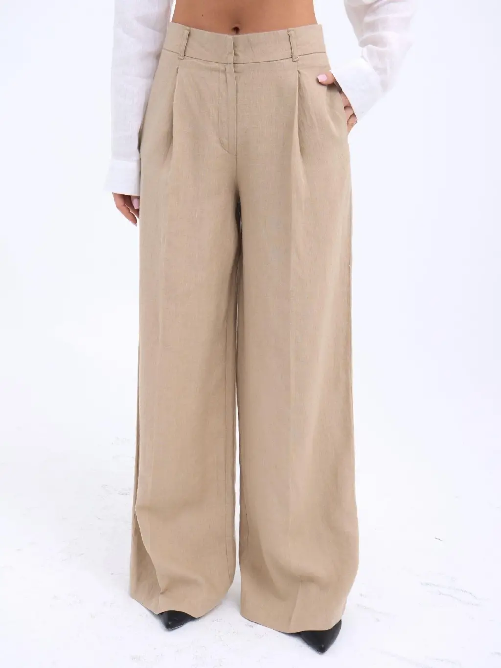 Geniş Paça Pileli Pantolon 6718 - Krem