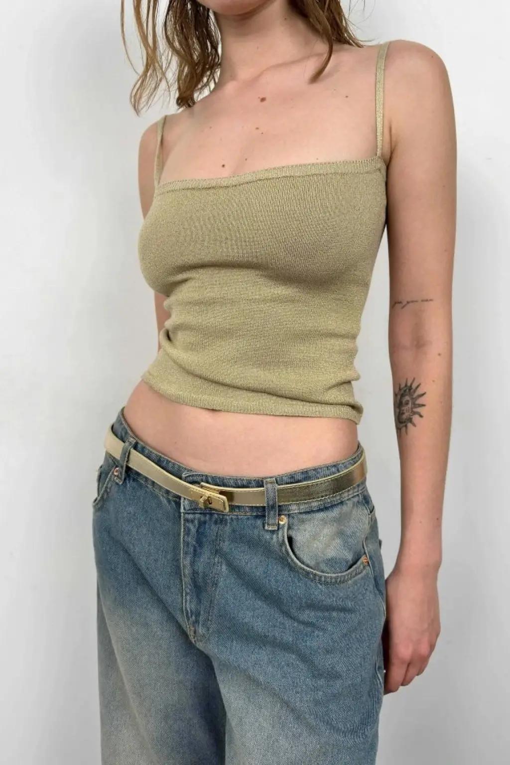 Askı Detay Parlak Triko Bluz