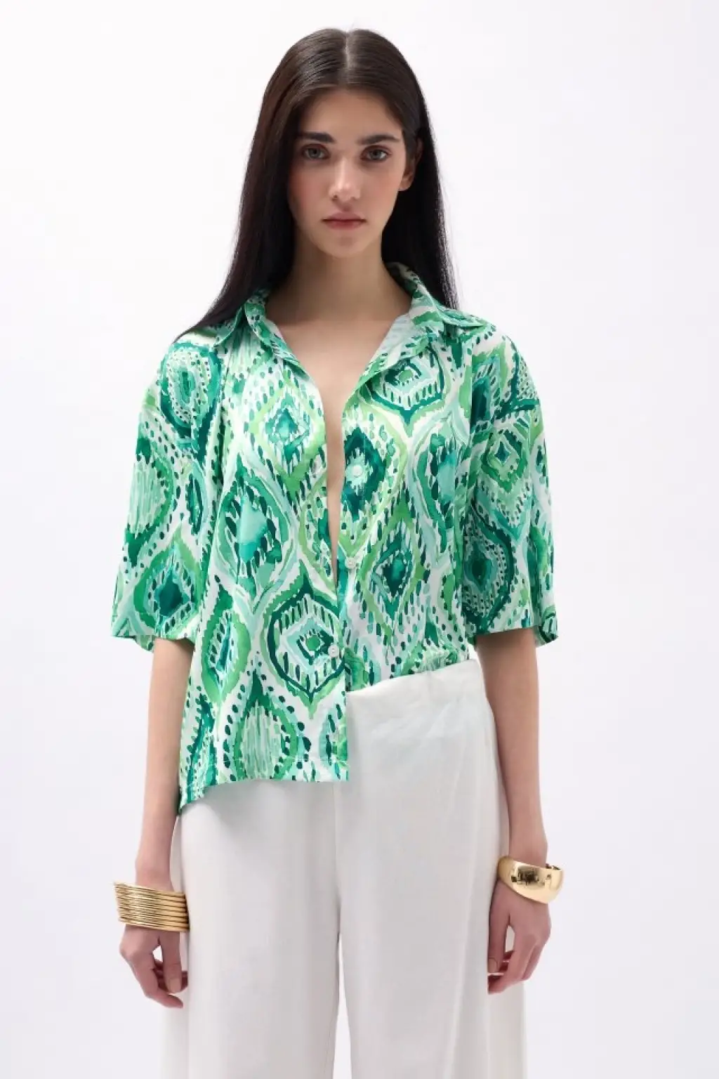Kadın Kısa Kollu Bisiklet Yaka çiçek Desenli Viskon Bluz
