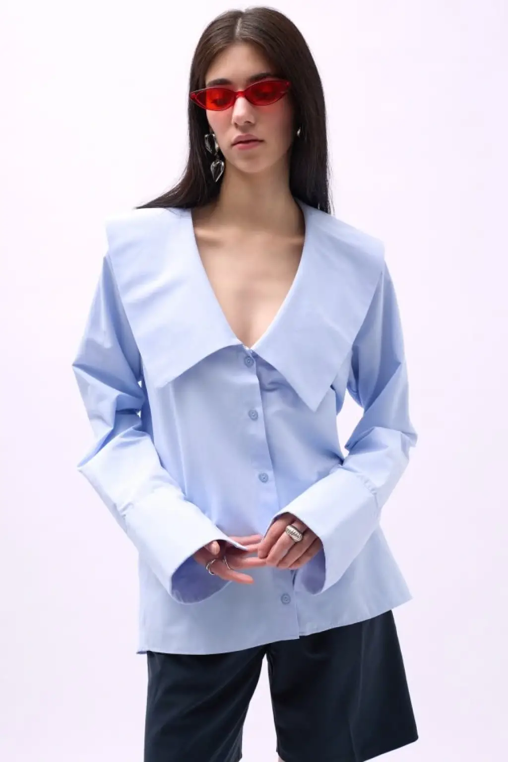 Geniş Yaka Volan Kol Gömlek