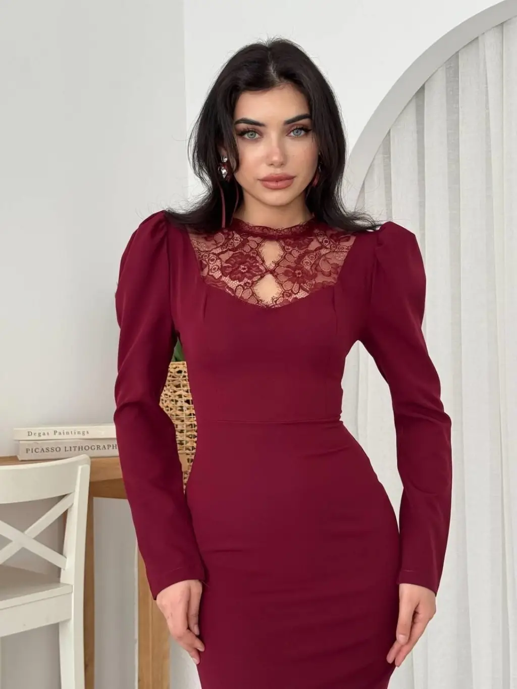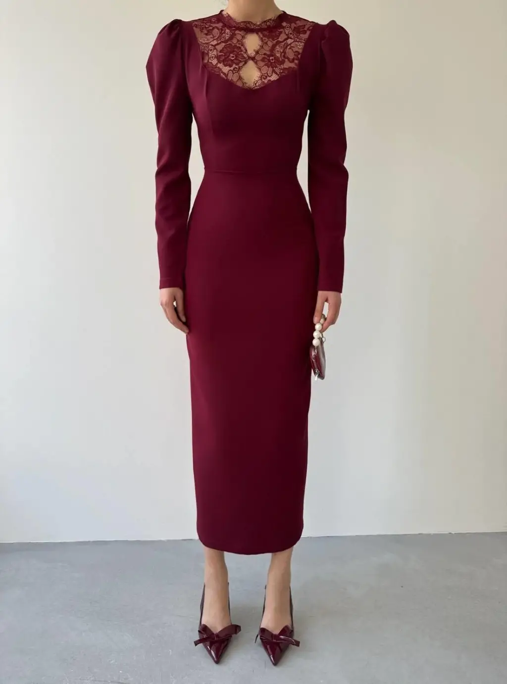 Kadın Uzun Kollu Hakim Yaka Tül Detay Ithal Krep Bluz