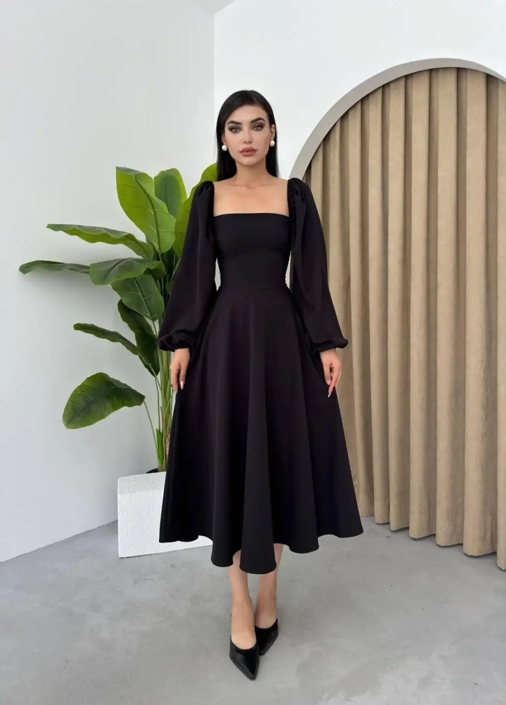 Kadın Kısa Kollu Kayık Yaka Arkadan Yakalı Ithal Krep Elbise