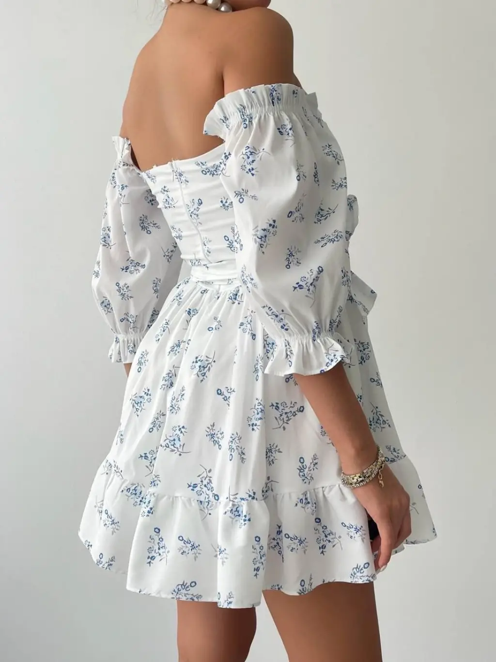 Kadın Kolsuz Omzu Volanlı Bisiklet Yaka Kaşkorse Mini Elbise