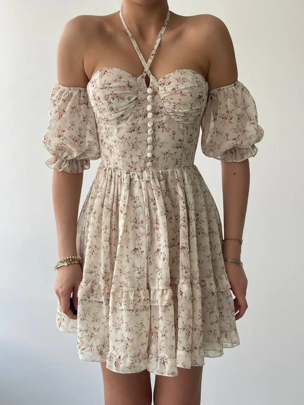 Kadın Kolsuz Omzu Volanlı Bisiklet Yaka Kaşkorse Mini Elbise