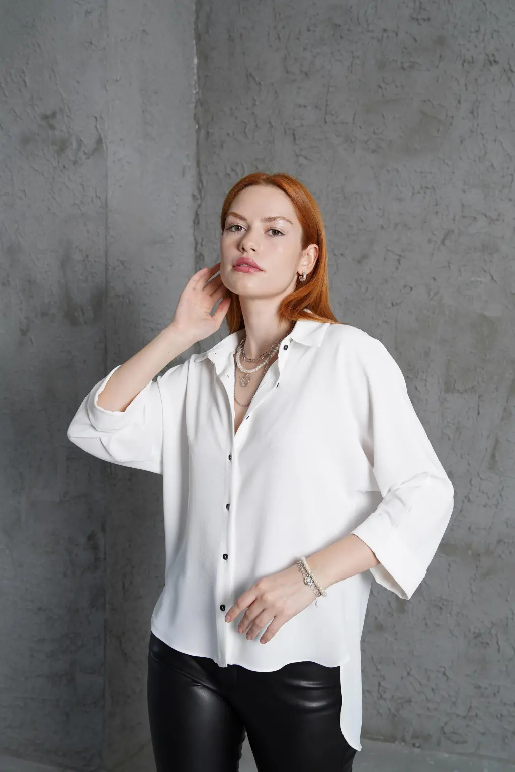 Kol Katlama Detaylı Beyaz Gömlek