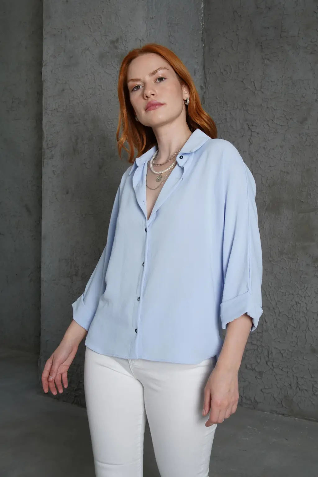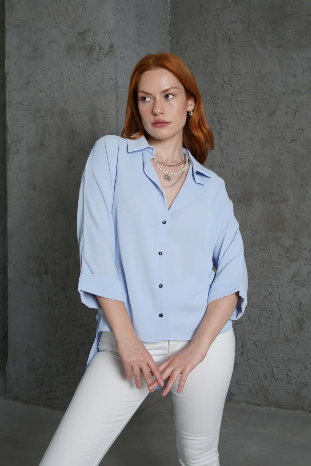 3900 Oversize Uzun Basic Gömlek - E. Mavi
