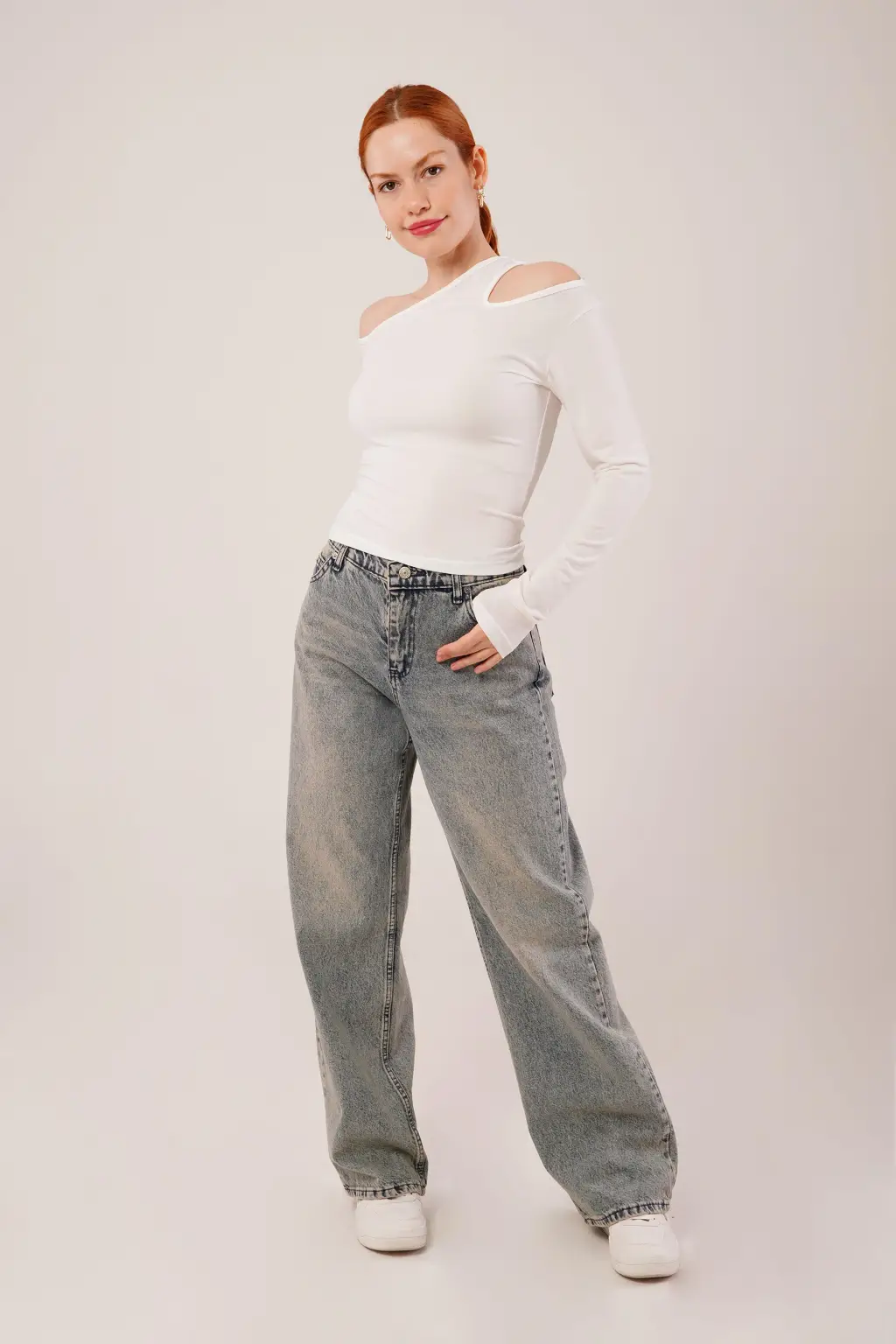 Kadın Uzun Kollu Bisiklet Yaka Asimetrik Kesim Detaylı Dantelli Viskon Bluz